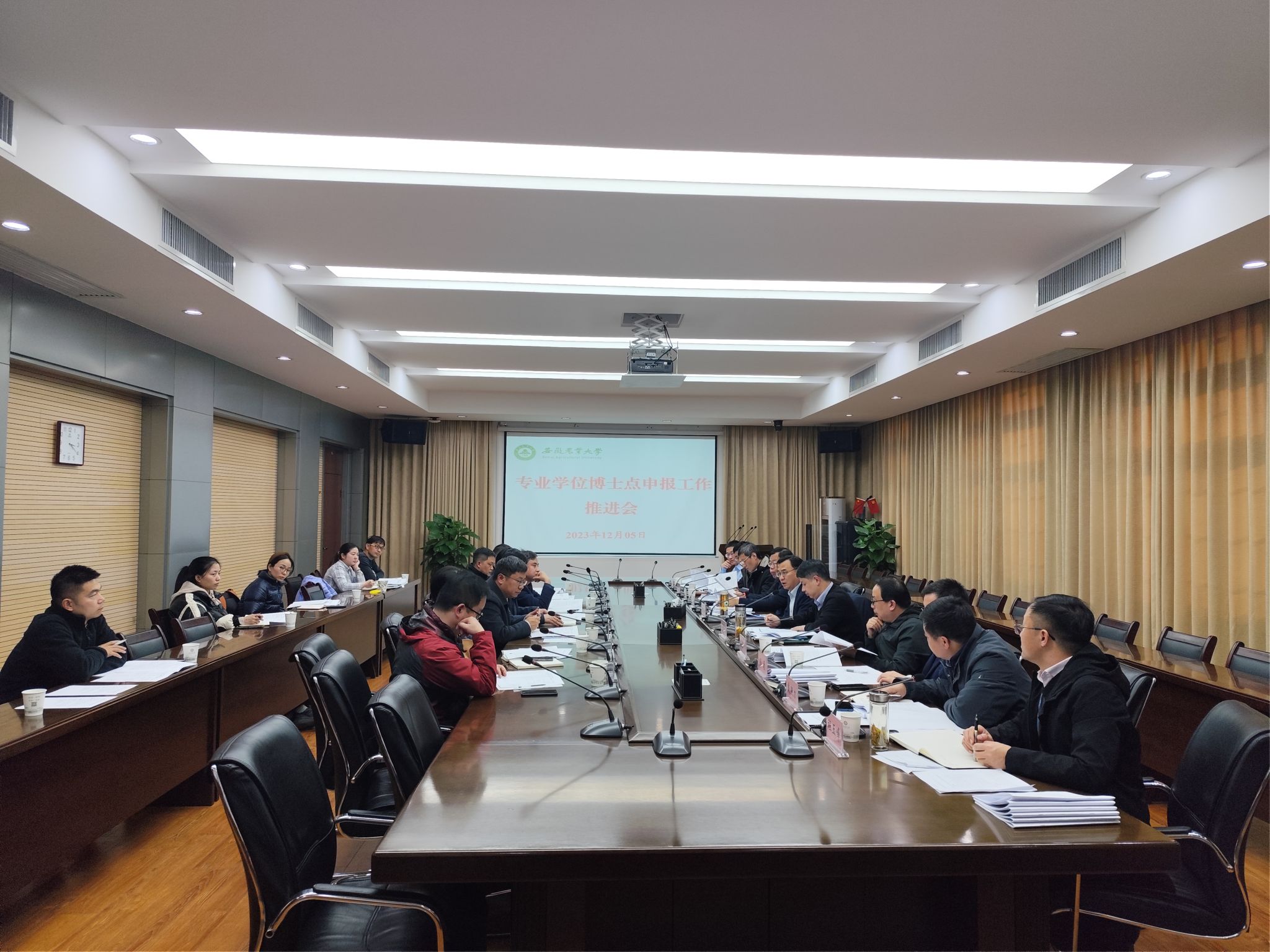 本网讯 12月5日下午,学校在第三会议室召开专业学位博士点申报工作推进会,相关职能部门负责人、学位点申报学院院长、学科带头人及申报书执笔人参加会议。会议由校党委常委、副校长操海群主持。
