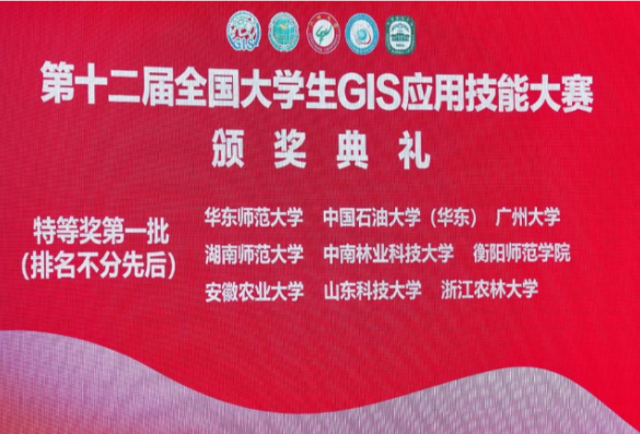 本网讯 12月1-3日,由中国地理学会、中国地理信息产业协会主办的“第十二届全国大学生GIS应用技能大赛”在广州大学举行,我校资源与环境学院参赛团队斩获特等奖。