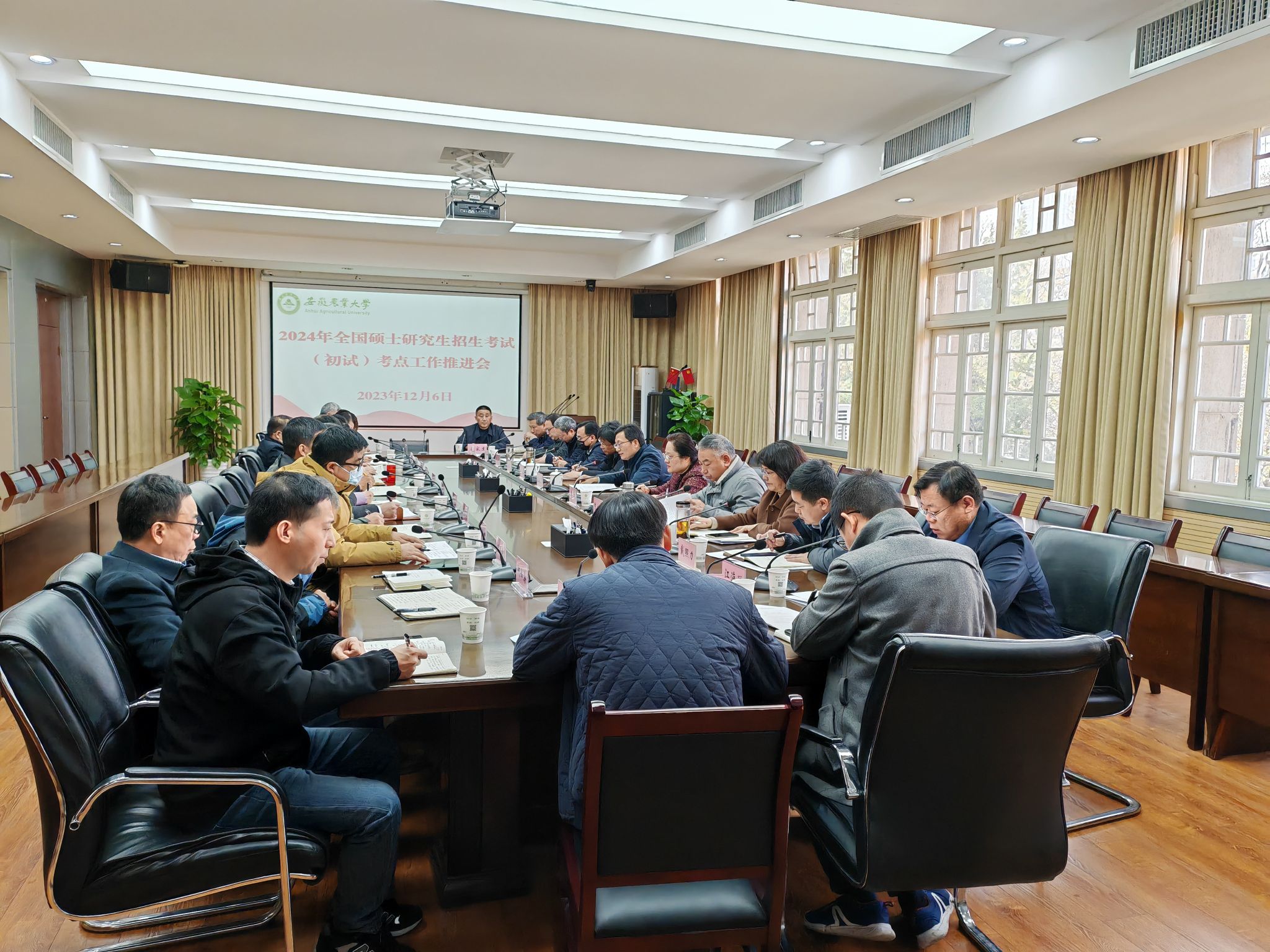 本网讯 12月6日上午,我校在第三会议室召开2024年硕士研究生招生考试(初试)考点工作推进会。校领导张庆亮、李红、韩军、陈文兵,校硕士研究生招生考试工作领导小组成员参加了会议。会议由党委常委、副校长操海群主持。
