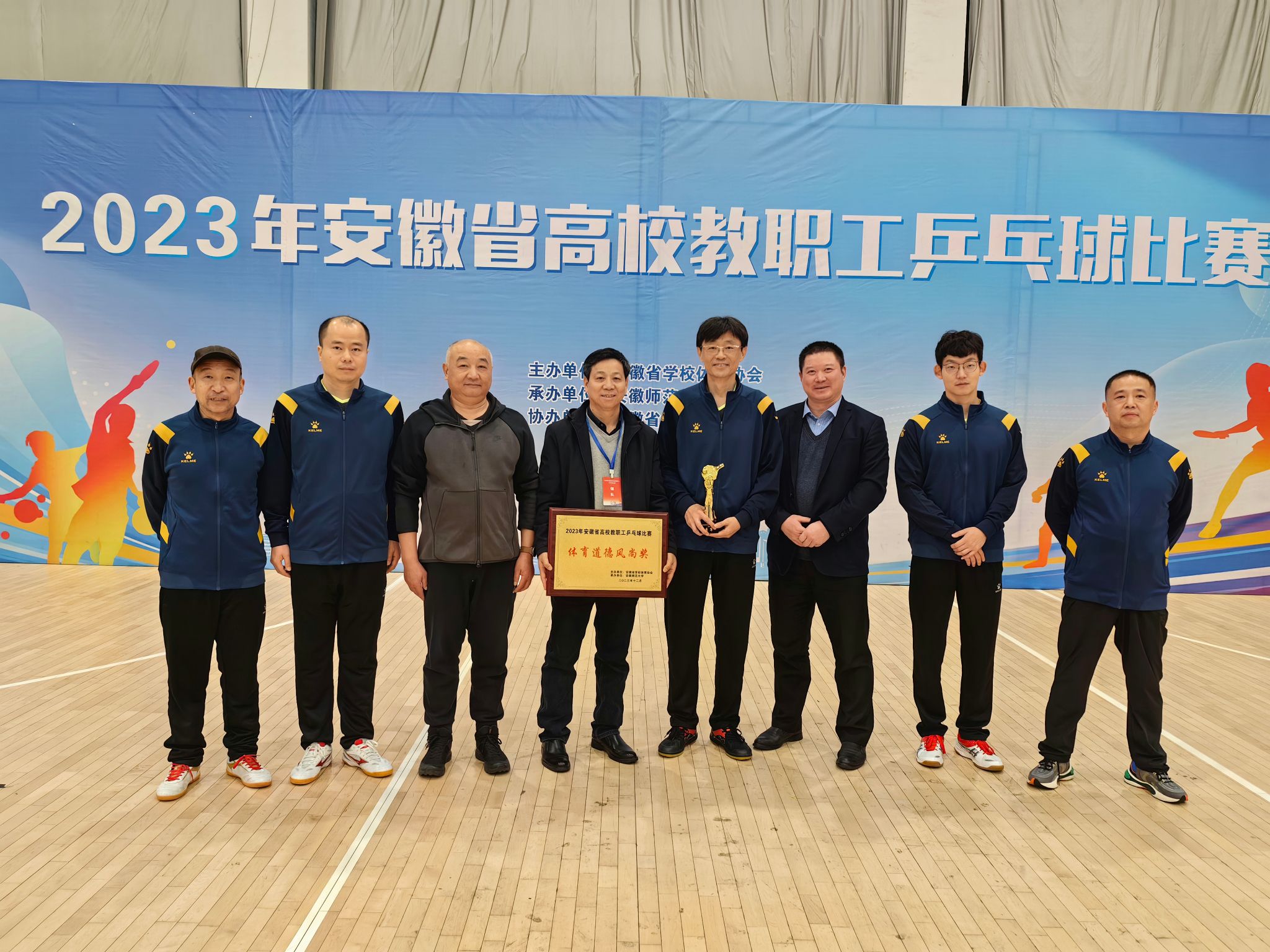 本网讯 12月10日,由安徽省学校体育协会主办、安徽师范大学承办、安徽省乒乓球运动协会协办的“2023年安徽省高校教职工乒乓球比赛”落下帷幕,我校教职工代表队荣获团体第三名的优异成绩。