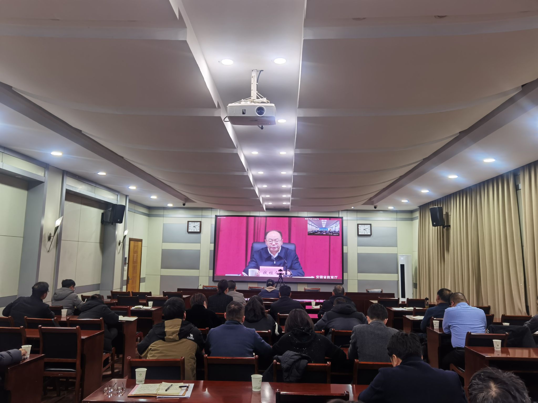 本网讯 12月13日下午,省教育厅、省人力资源和社会保障厅联合召开全省2023届高校毕业生就业工作总结暨2024届高校毕业生就业工作推进会议。省委教育工委书记、省教育厅厅长钱桂仑,省人力资源和社会保障厅党组成员、副厅长陈宏,省经济和信息化厅党组成员、副厅长罗文杉出席会议并讲话,省教育厅(省委教育工委)一级巡视员王佩刚主持会议。校党委书记张庆亮在主会场参加会议。我校在勤政楼第二会议室设立分会场,校党委常委、副校长李红出席会议。