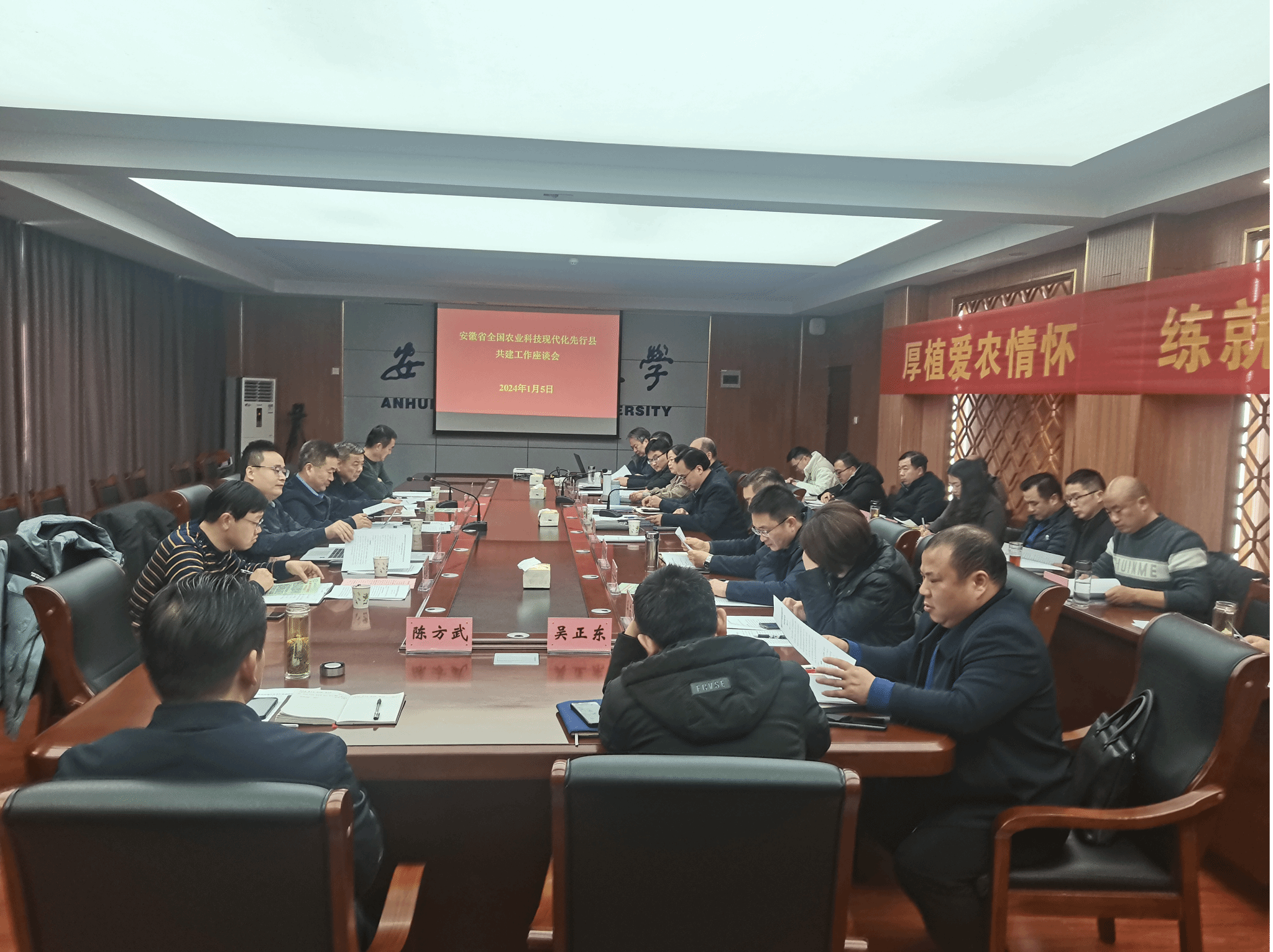本网讯 1月5日,农业农村部科学技术司二级巡视员何艺兵一行调研指导我校全国农业科技现代化先行县共建工作。校党委常委、副校长操海群出席座谈会并参加相关活动。