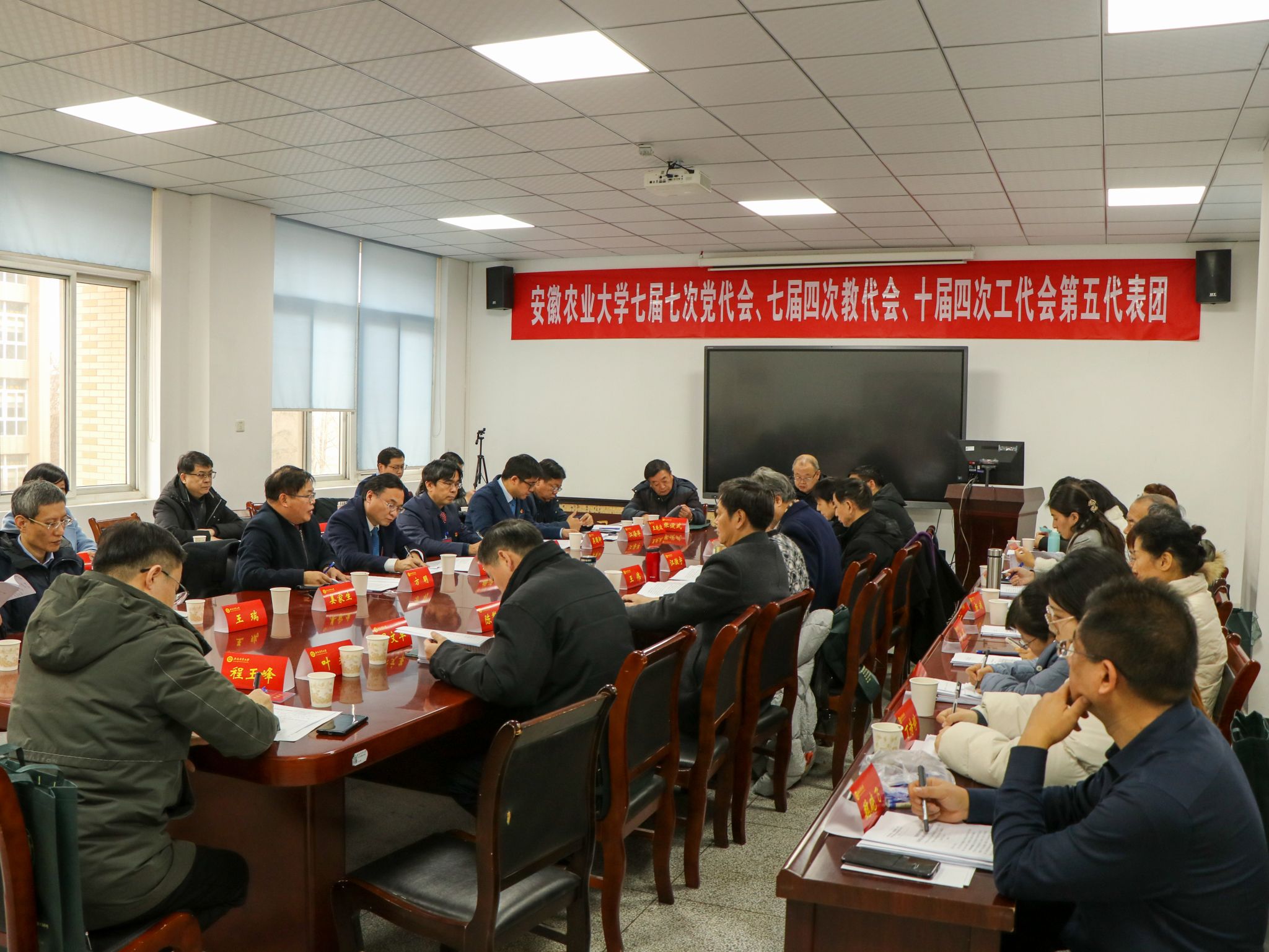 本网讯 1月16日,七届七次党代会、七届四次教代会、十届四次工代会暨2024年全面从严治党工作会议进行了分组讨论。校领导张庆亮、李红、韩军、陈文兵、操海群分别参加了讨论。