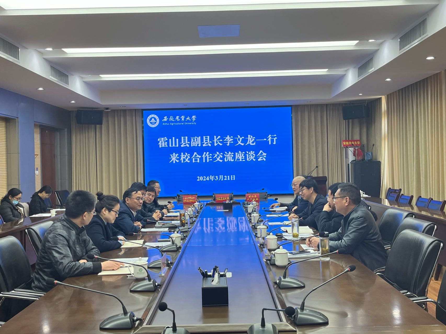 李文龙介绍了霍山县农业产业发展情况以及对农业人才的需求。他希望在人才引进、技术研发、特色产业发展以及和美乡村建设等方面与我校持续深入开展合作交流。