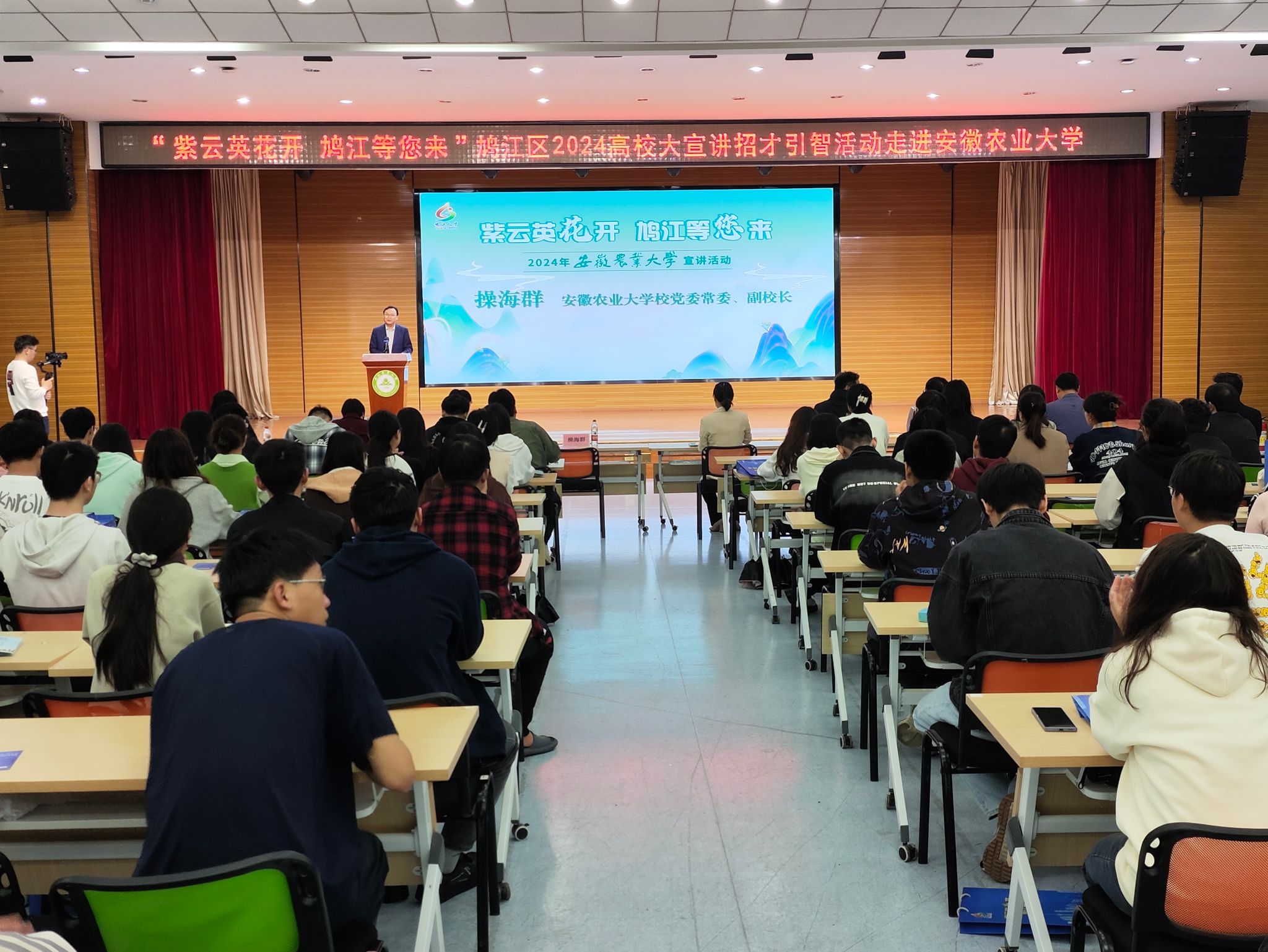 本网讯 4月17日上午,“紫云英花开、鸠江等你来”芜湖市鸠江区2024年“招才引智高校行”活动和校地座谈交流会分别在我校举办,鸠江区委副书记梁燕率队参加。校党委常委、副校长操海群出席座谈及宣讲活动。