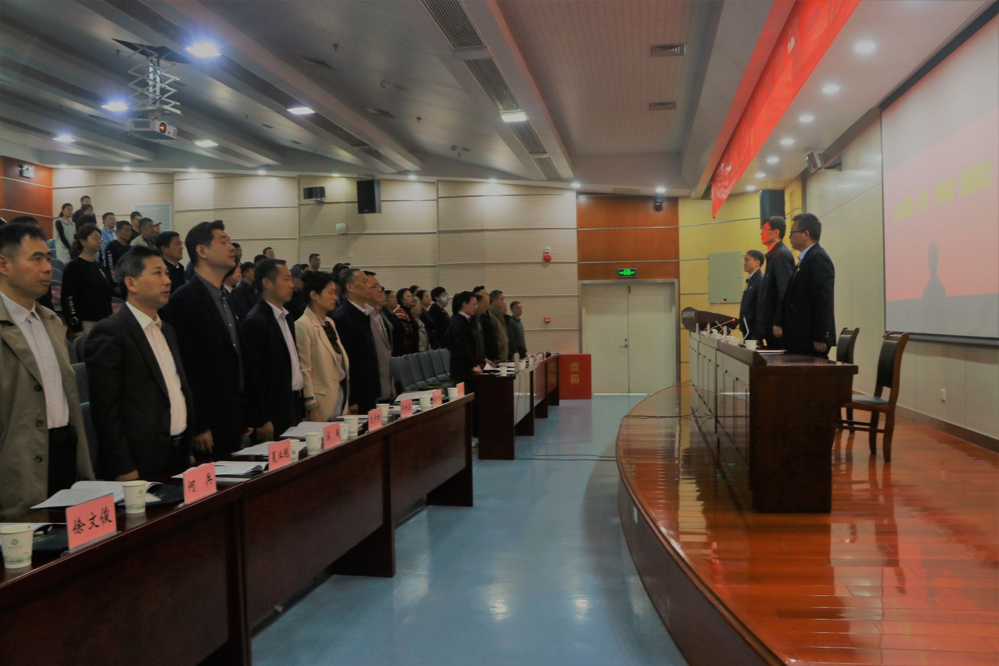 会议在庄严的国歌声中拉开帷幕。