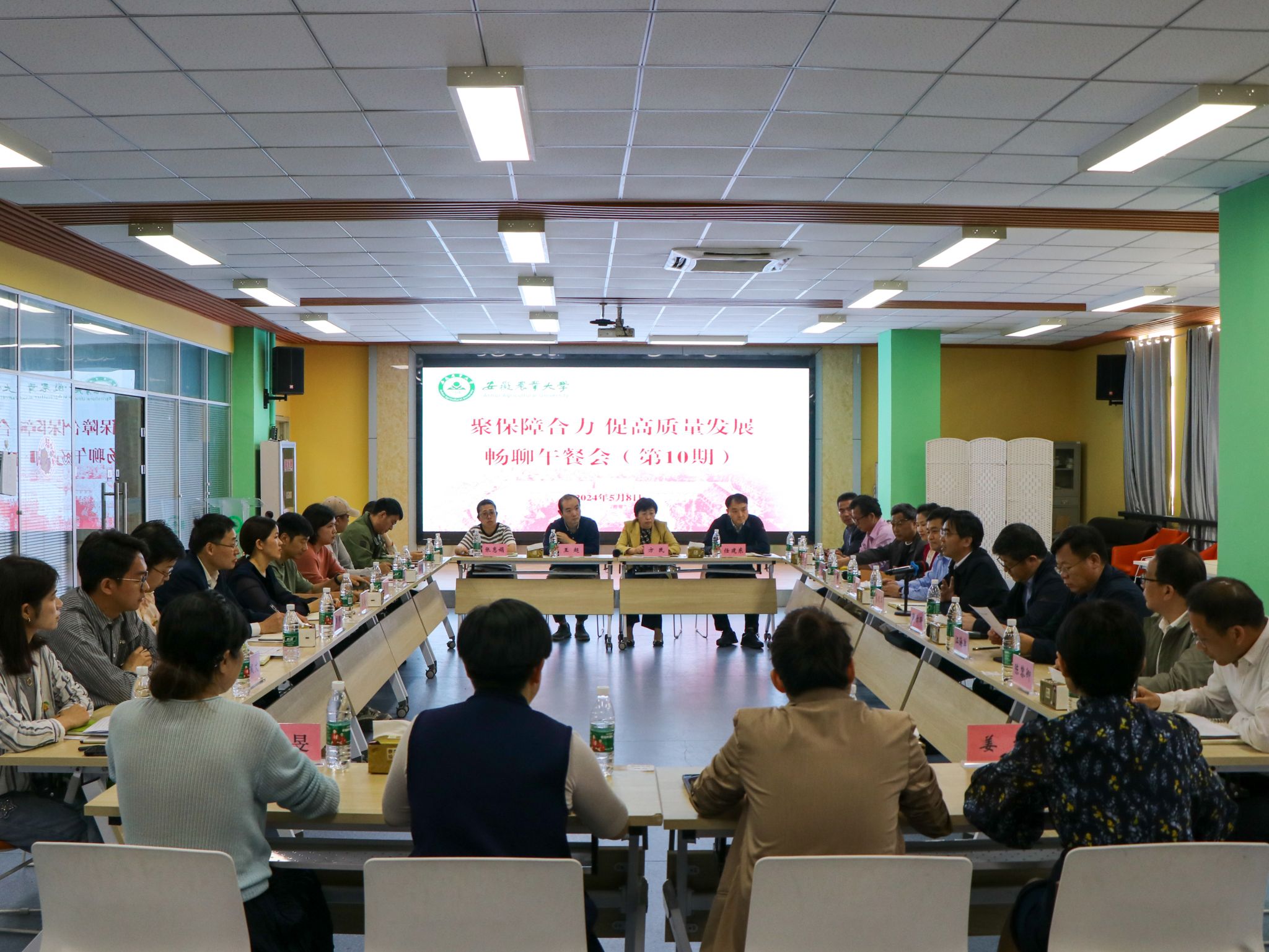 本网讯 5月8日中午,学校第十期“畅聊午餐会”在大学生创客空间举办。校党委常委、副校长蔡德军与15名学校保障服务领域一线工作人员代表面对面、心贴心畅聊服务保障学校高质量发展。学校相关职能部门负责同志参加会议。