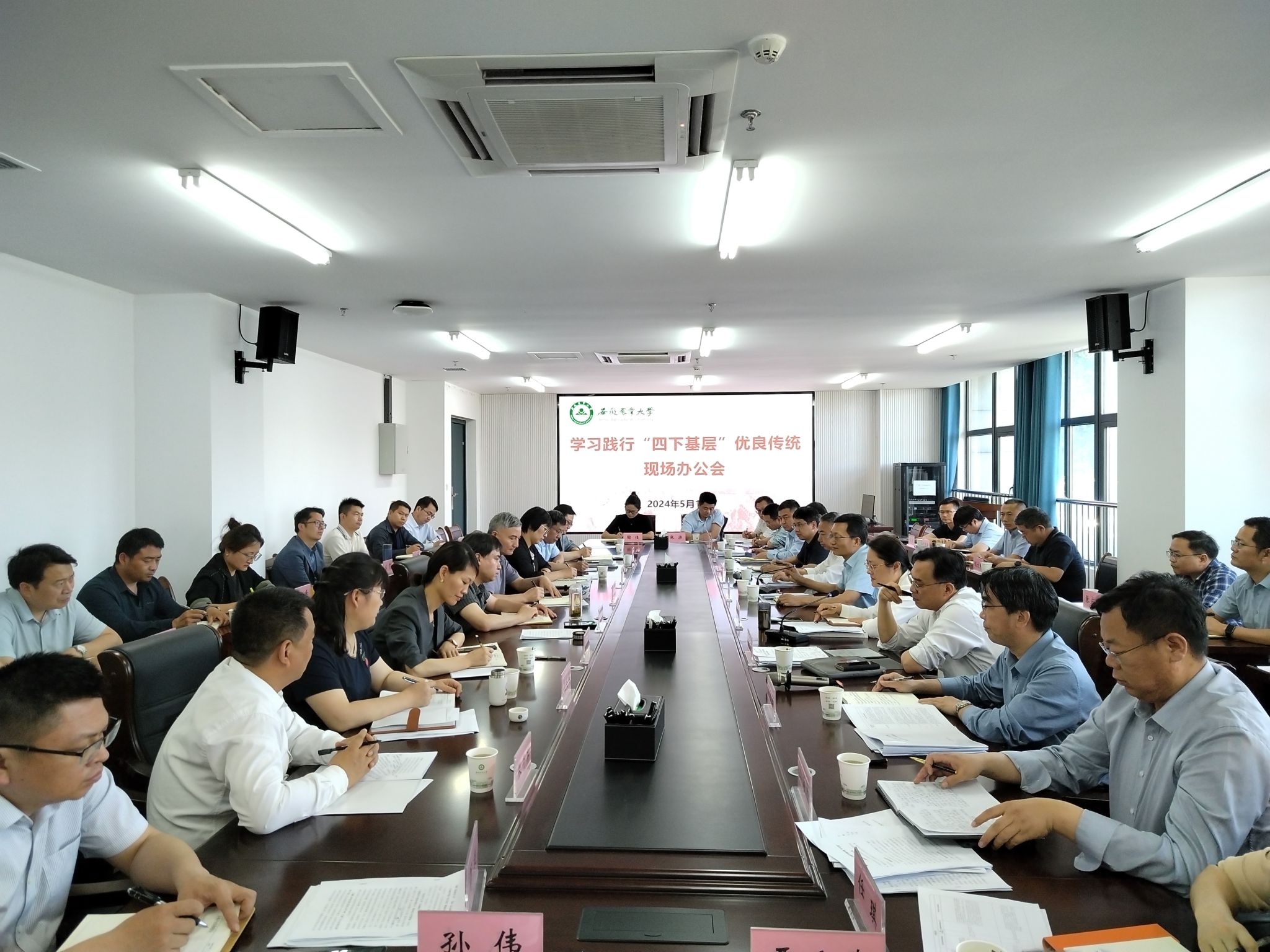 本网讯 5月15日下午,校党委学习践行“四下基层”优良传统,到朝阳楼开展现场办公。校领导张庆亮、李红、陈文兵、操海群、吴祥为、蔡德军出席会议。农学院、植物保护学院、园艺学院、动物科技学院、生命科学学院、资源与环境学院党政领导班子参加会议。