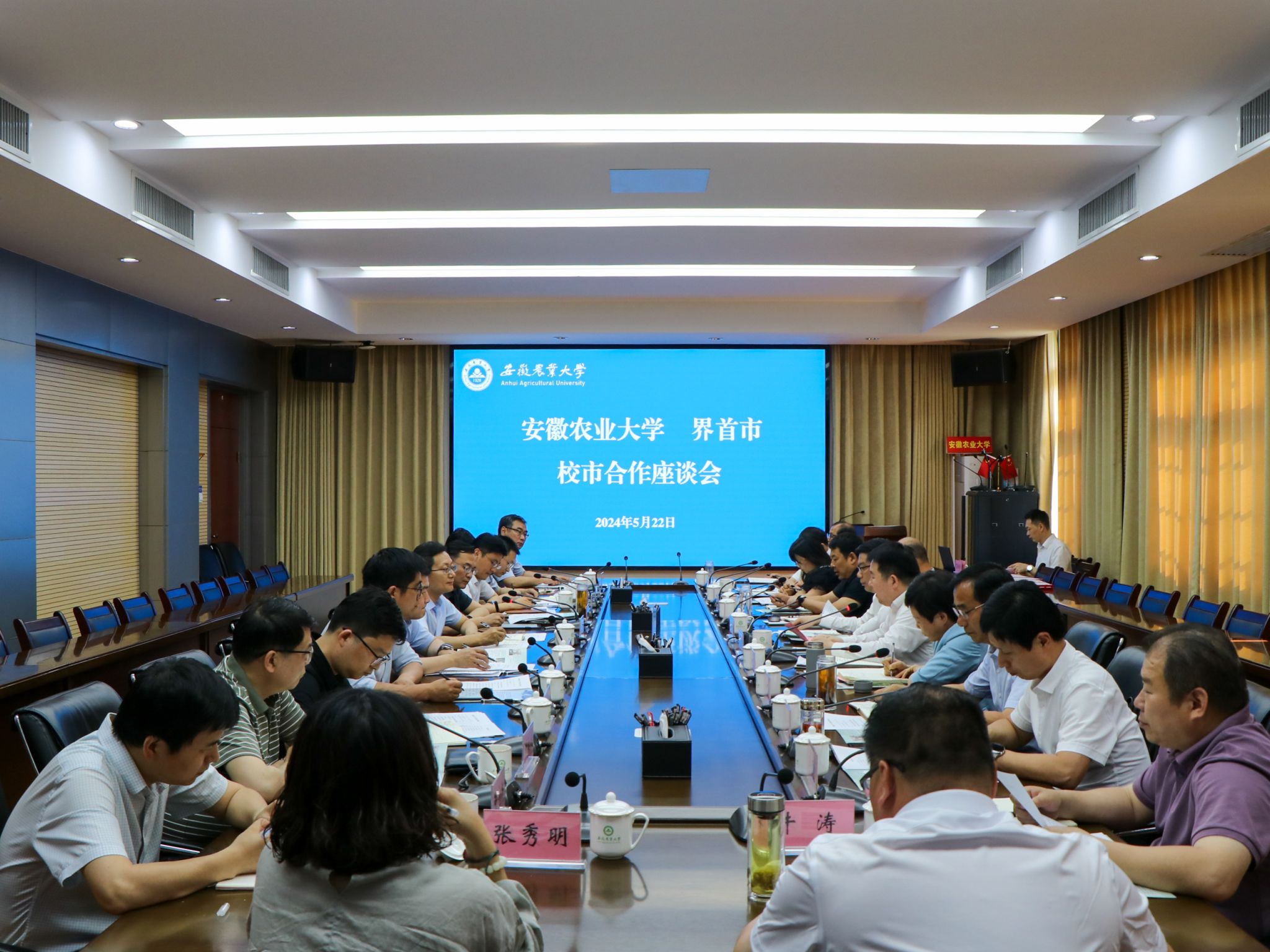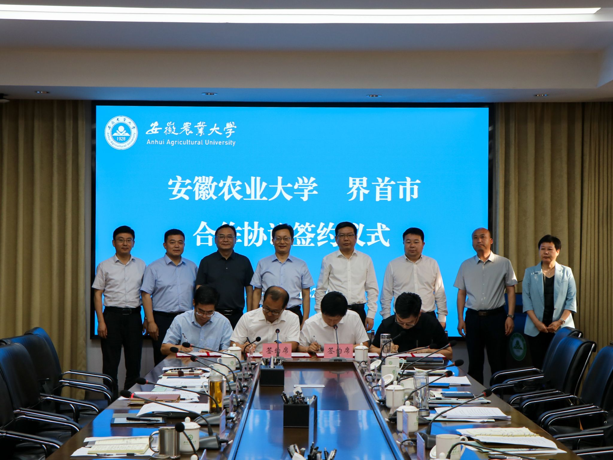 刘永春和操海群分别介绍了界首市和学校基本情况。座谈会上,双方围绕校地合作进行了座谈交流。校市双方围绕智能农机装备产业研究院建设、界首市绿色食品产业园建设规划、界首市绿色食品产业发展规划、界首市陶庙镇食用菌现代产业园建设规划分别签订相关协议。