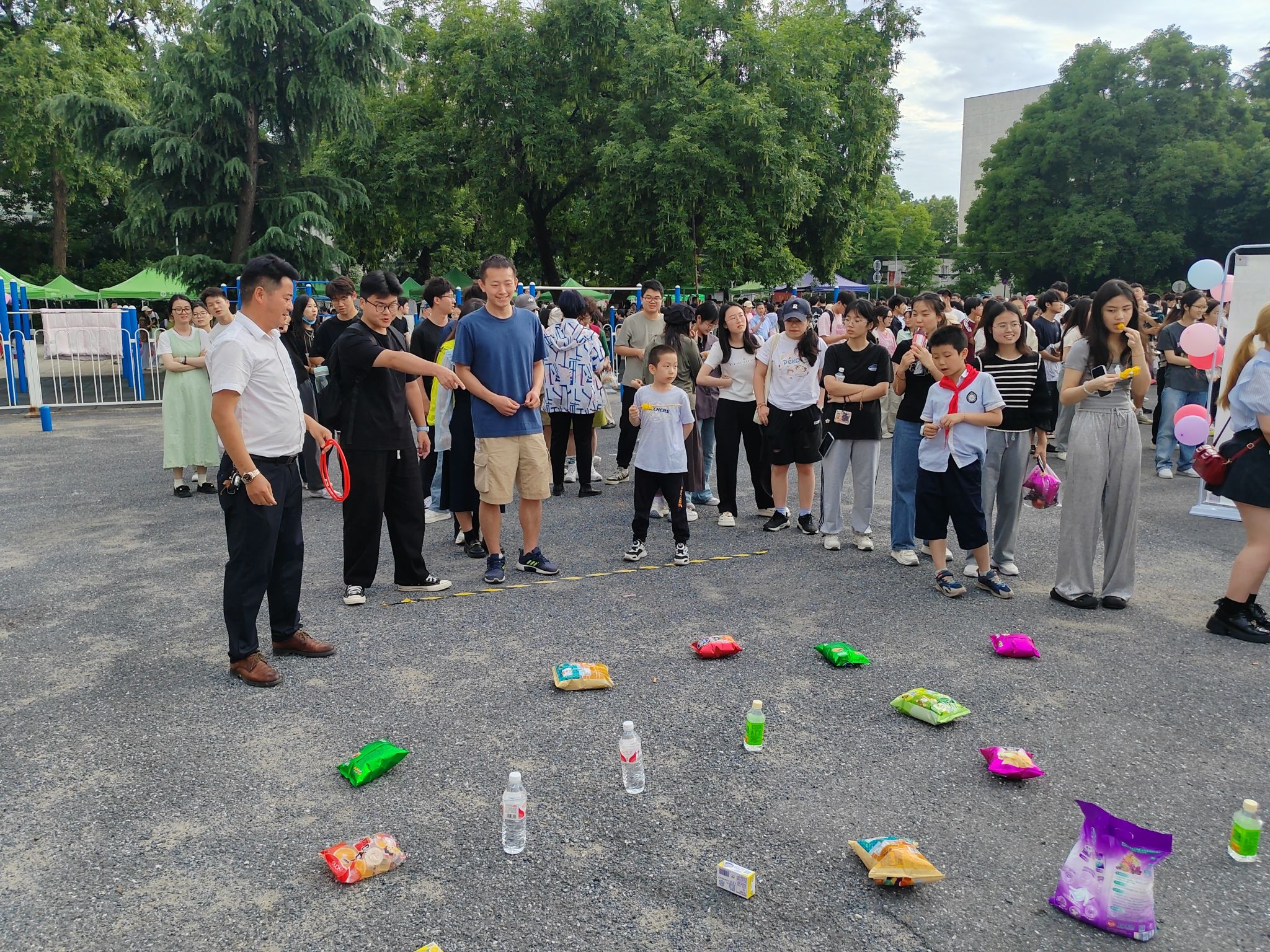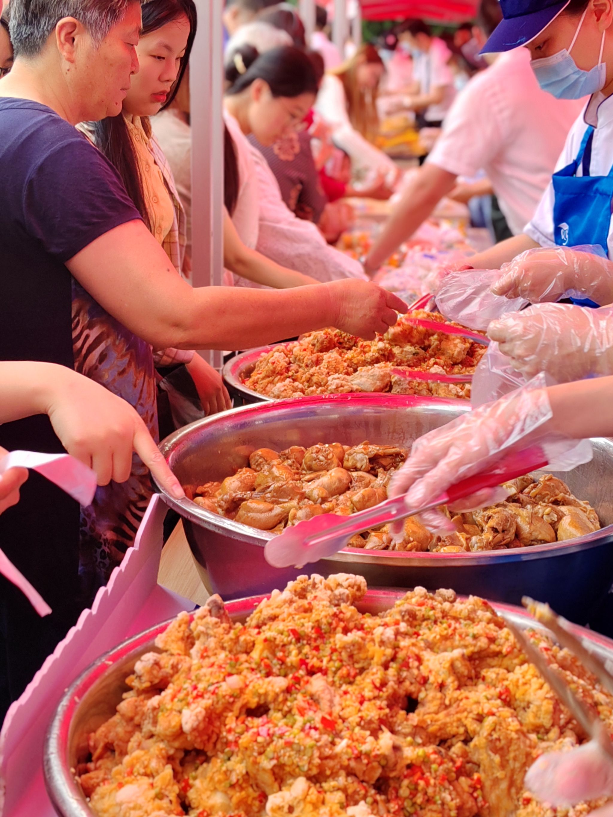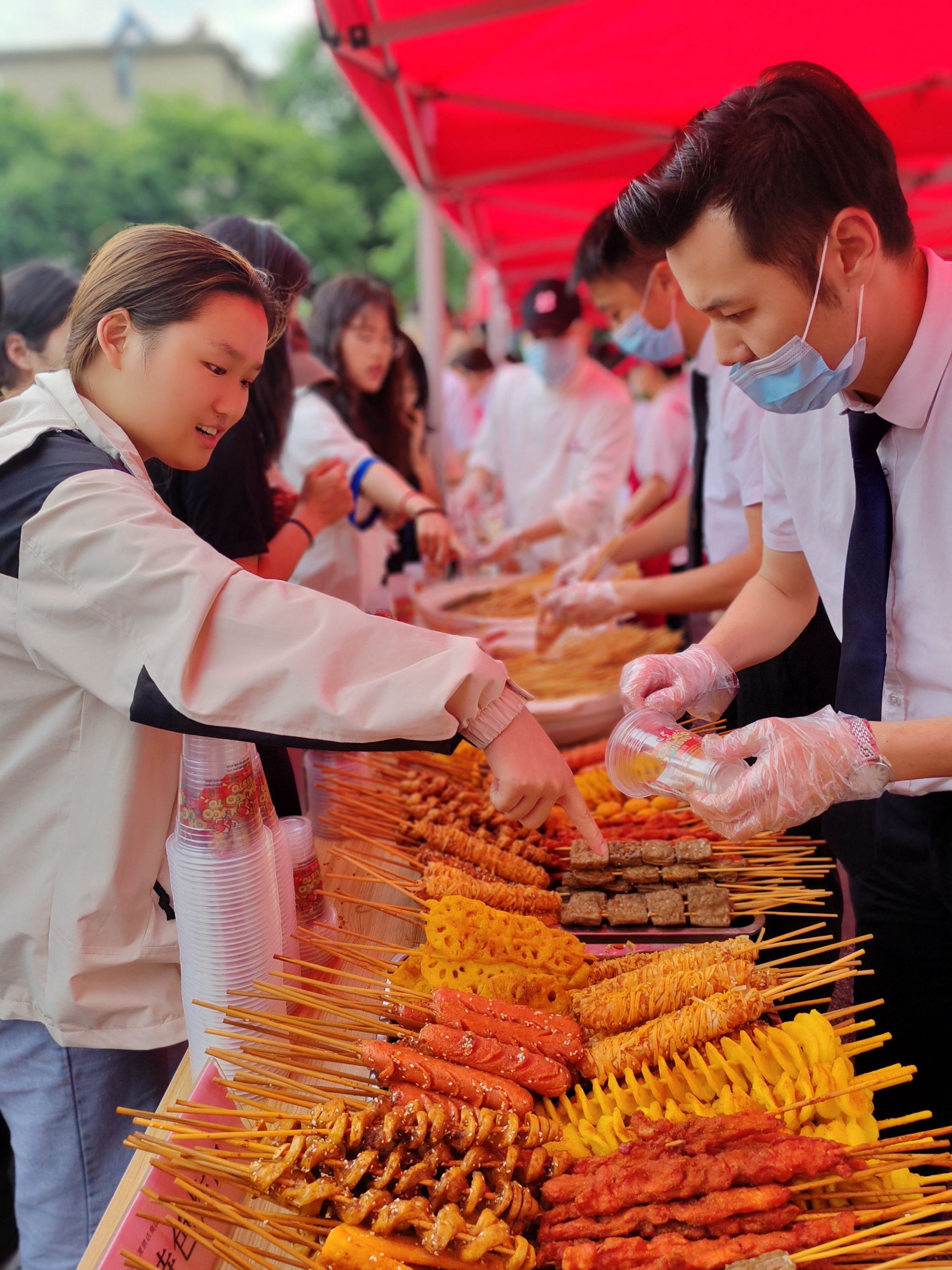 活动现场设置了美食区、手工区和互动区。美食区聚集了东苑、北苑、西苑、欣苑、丰泽和思源等6家学生食堂精心准备的各具特色美食:2000斤小龙虾,蒜蓉的、麻辣的、十三香等口味一应俱全,学生早早锁定自己喜爱的美食,活动开始前一个小时就排起长队;3000份卤烧味和香辣脆皮味的鸡腿,1000多份糕点、2000多份水果拼盘和各类炸串、1000多个多味粽子,多方位满足学生的味蕾,大家直呼看的过瘾,吃的解馋。在手工区,宏德、鹏辉等2家学生公寓物业员工手把手教授学生制作了爱心香包、艾草花环、五彩绳。在互动区,长城、保利等2家校园物业开展有奖竞猜、扔飞镖、套圈、投壶等活动,滨彩纷呈。
