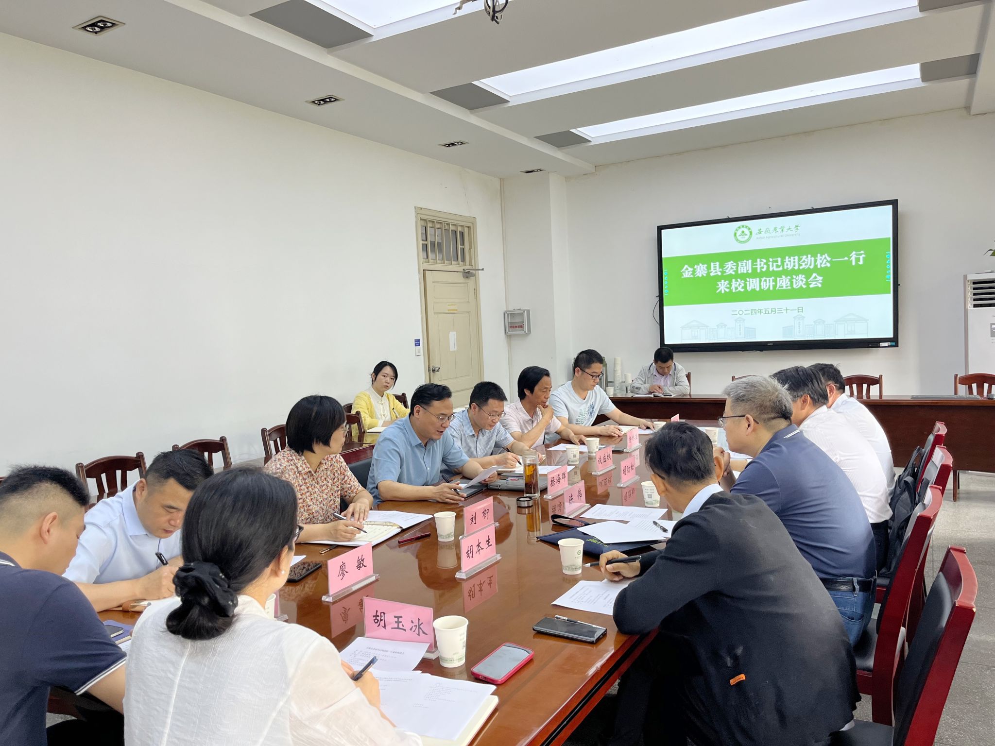 本网讯 5月31日上午,金寨县委副书记胡劲松一行来校调研,双方就深化校县合作、金寨蜜蜂产业发展和科技小院工作开展座谈交流。校党委党委、副校长操海群主持会议。