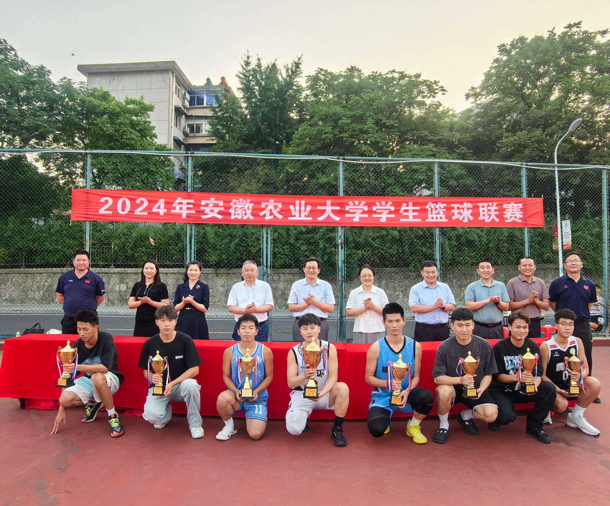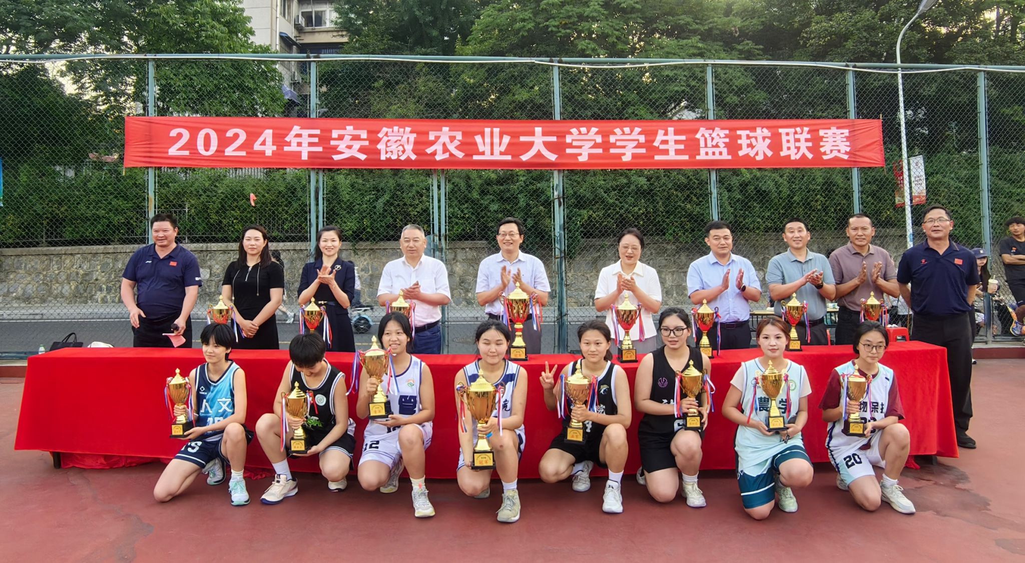 本次比赛共有来自全校15个学院的27支队伍参赛,经过7天60场比赛的激烈角逐,最终资源与环境学院凭借出色的团队协作和精湛的球技,荣获男子组冠军,植物保护学院、信息与人工智能学院分获男子组亚军和季军,工学院、动物科技学院、外国语学院、经济管理学院和农学院分别获得第四至第八名;在女子篮球比赛中,资源与环境学院获得冠军,材料与化学学院和经济管理学院分获女子组亚军和季军,动物科技学院、茶与食品科技学院、农学院、人文社会科学学院和植物保护学院分别获得第四至第八名。