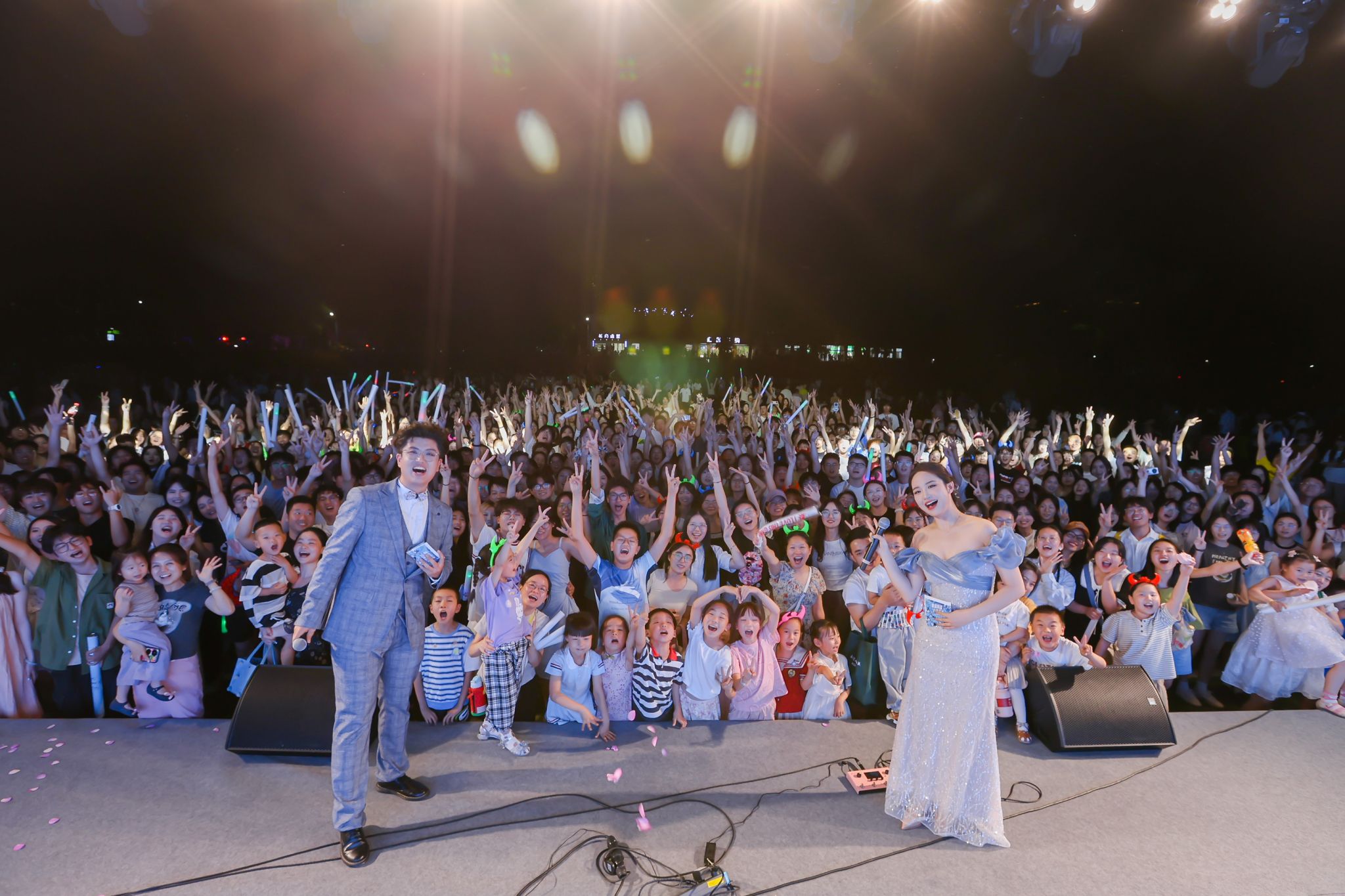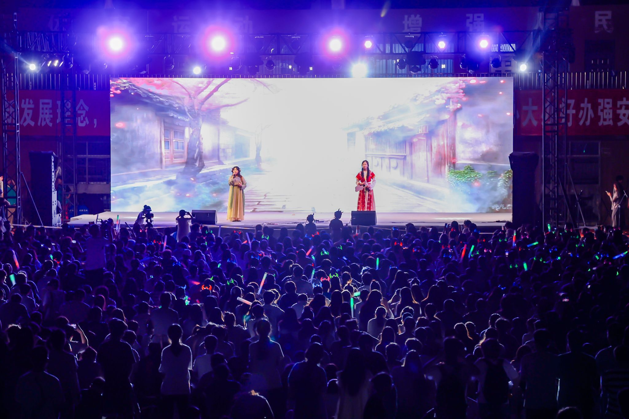 在夏夜的晚风中,师生们在草坪上席地而坐,共赴这场音乐盛会,用心感受音乐的魅力。伴随着《你要跳舞吗》《Pop Love》的开场乐队和舞蹈演出,本次音乐节拉开了序幕。《起风了》《如愿》《无名的人》《那些年》《再见》……同学们用丰富的情感、细腻的歌声演唱一首首歌谣,歌声中演绎离别的思绪,表达真挚的师生情谊。历届校园十佳歌手、校园乐队、特邀嘉宾等带来了精彩的演出,激昂活力的说唱,瞬间点燃观众;安静温柔的民谣,让人沉醉其中;抒情婉转的流行音乐,带动全场合唱。现场灯光闪烁,荧光棒挥舞,欢呼和掌声此起彼伏,同学们肆意挥洒青春热血,尽显昂扬奋进的姿态,尽情抒发热忱与理想,诉说对未来的无限期许。