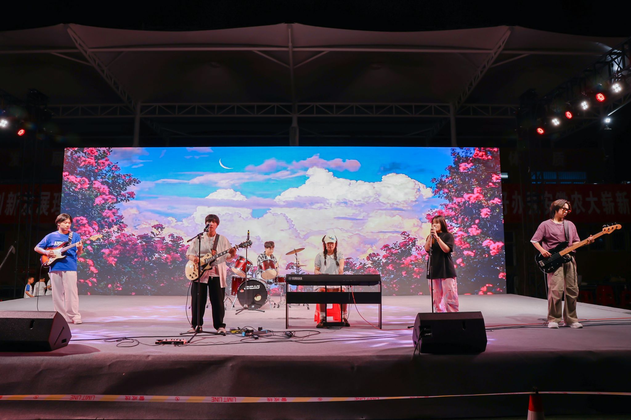 本网讯 花开满盛夏,毕业致青春。6月16日晚,我校首届“夏至将至,未来正来”毕业生草坪音乐节在第一运动场举行,2000余名师生在星空之下、草坪之上参与了这场视听盛宴。