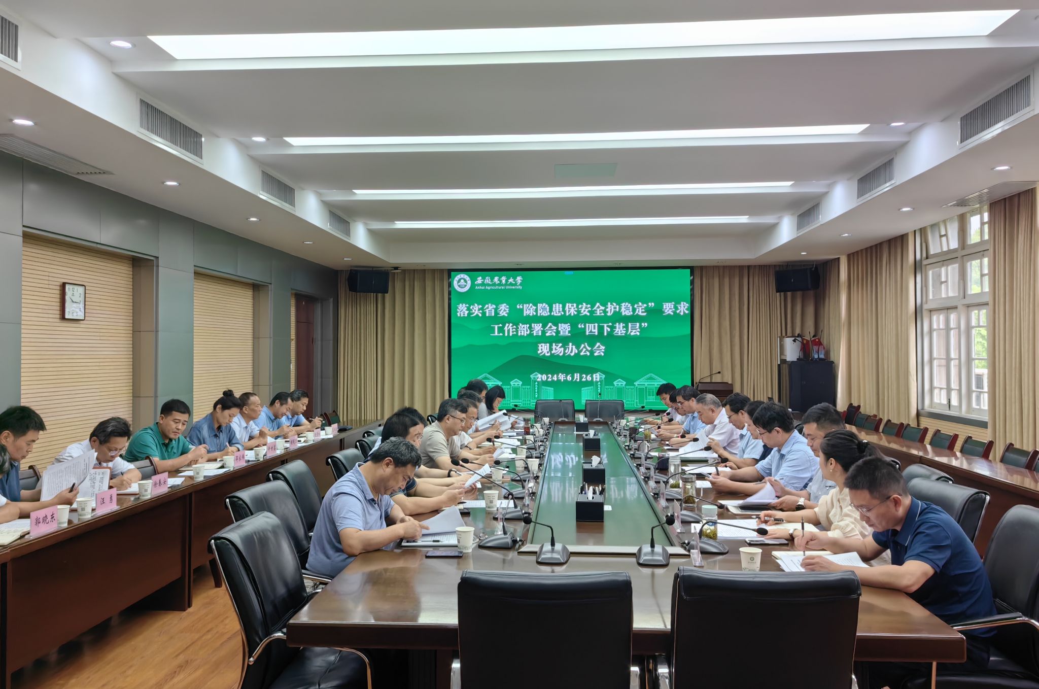本网讯 6月26日上午,校党委书记张庆亮主持召开落实省委“除隐患保安全护稳定”要求工作部署会暨“四下基层”现场办公会,学习传达全省以案为鉴以案促改除隐患保安全护稳定会议精神。校领导李红、陈文兵、吴祥为、蔡德军出席会议。会前,校领导带队赴学校大礼堂、大学生创客空间A区、学生公寓14栋、丰泽食堂、职工四宿舍、北一门98号楼、工会南侧围墙等地,实地查看风险隐患防范情况。