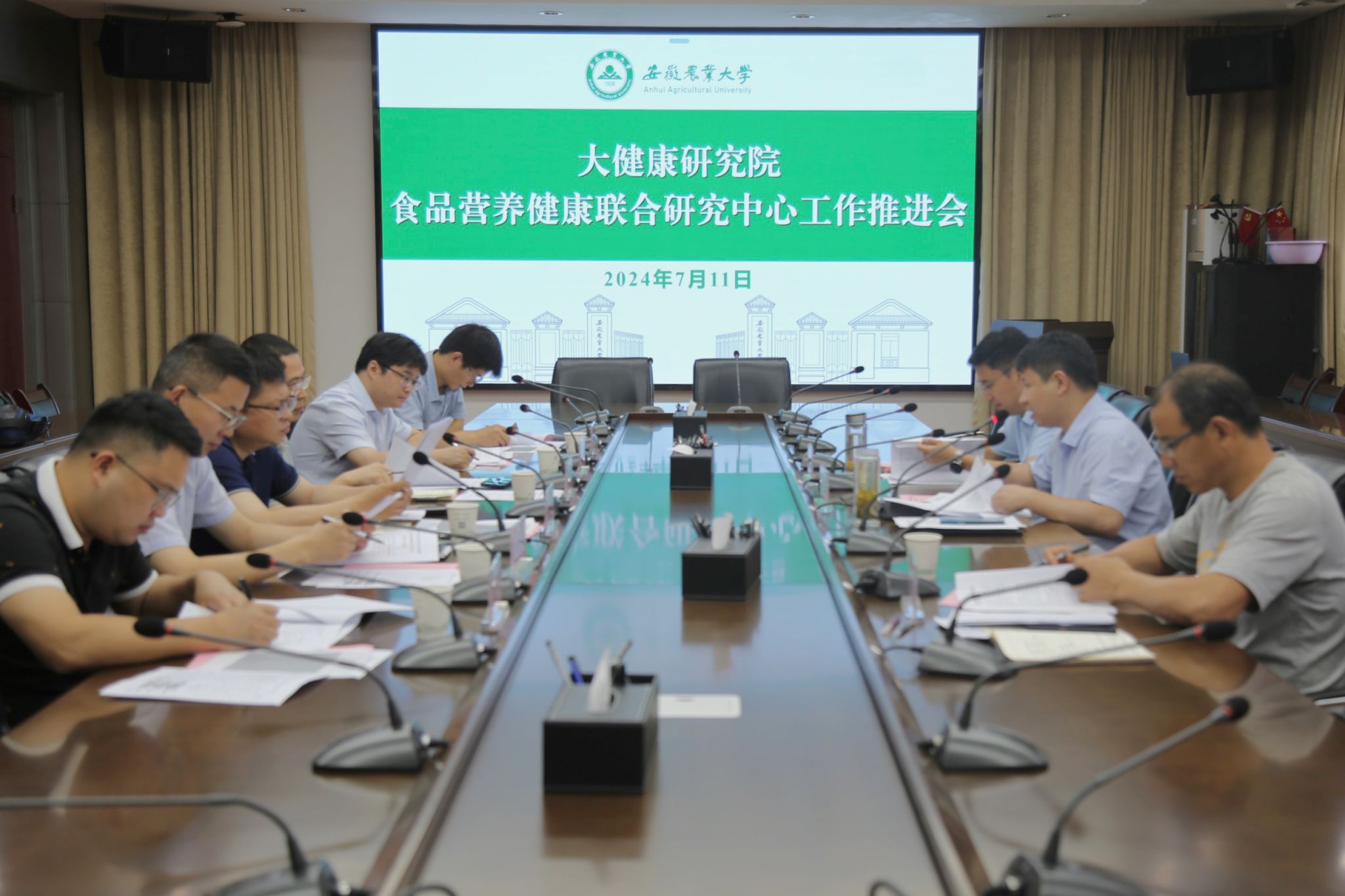 本网讯 7月11日上午,合肥综合性国家科学中心大健康研究院食品营养健康联合研究中心建设工作推进会在勤政楼第三会议室召开。校党委常委、副校长吴祥为主持会议。食品营养健康联合研究中心相关专家参加会议。