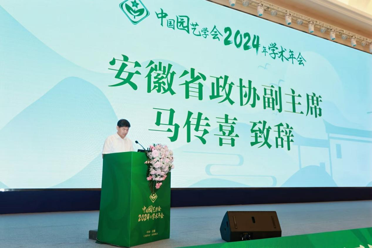马传喜在致辞中指出,安徽作为农业大省,拥有丰富的园艺资源和深厚的园艺文化底蕴,是长三角名副其实的“米袋子”“菜篮子”“果盘子”“花园子”。园艺产业是我省农业经济的重要组成部分,是践行“大食物观”的重要保障。安徽农业大学作为我省农业科技创新的排头兵,为加快推进农业现代化,实现农业大省向农业强省新跨越做出了重要贡献。他希望,安徽园艺科技工作者要与专家学者们深入交流、广泛合作,共同探讨园艺科学的最新研究成果、技术革新和产业发展趋势,为我国、我省园艺科技创新和产业发展注入新的活力。