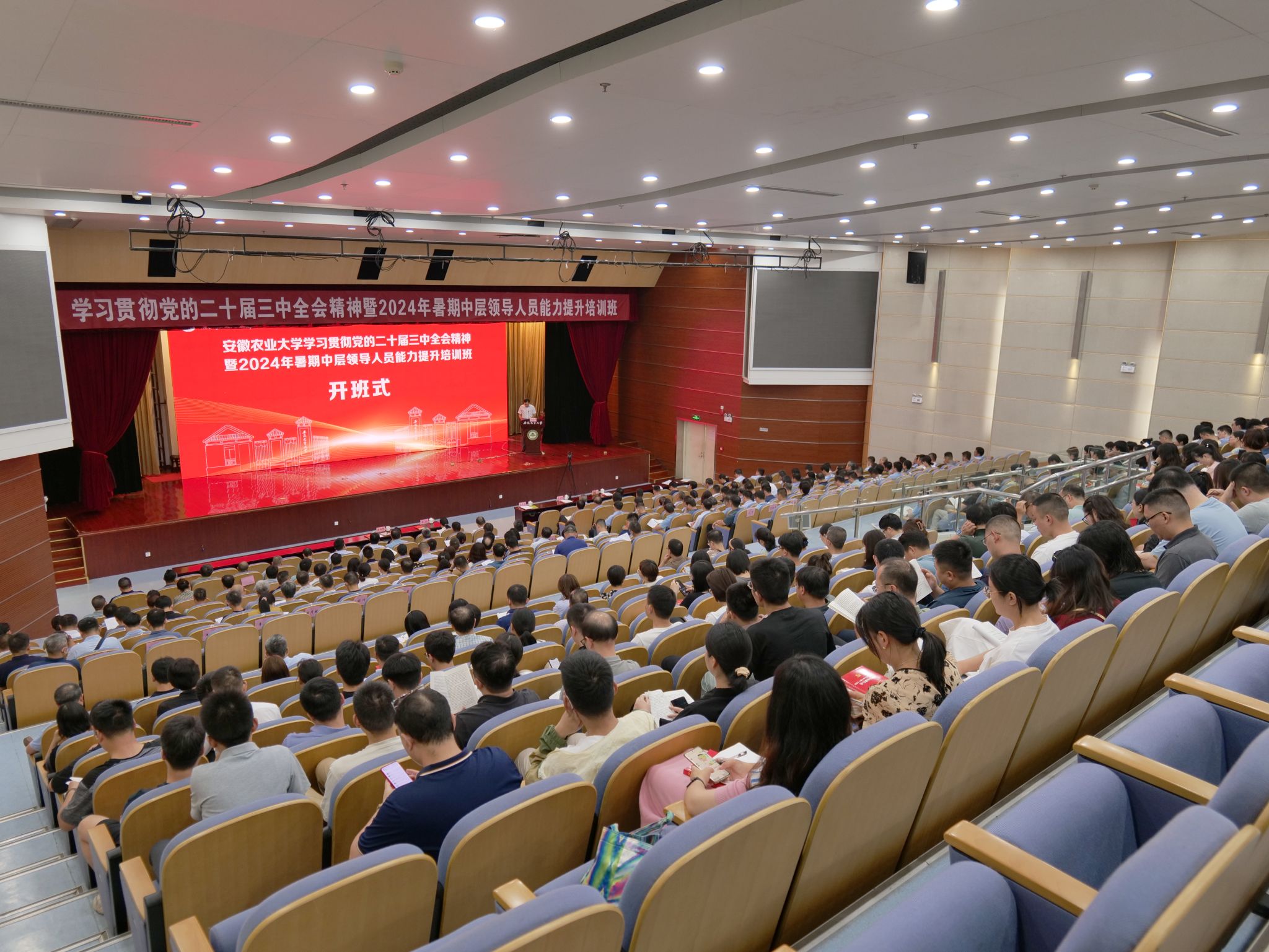 本网讯 8月23日上午,我校学习贯彻党的二十届三中全会精神暨2024年暑期中层领导人员能力提升培训班在图书馆第一报告厅开班。校党委书记张庆亮出席开班式并作动员讲话。校党委常委、纪委书记、监察专员陈文兵主持开班式。校领导李红、操海群、吴祥为出席会议。学校全体处级干部、科级干部以及各二级党组织纪委委员、办公室主任参加开班式。