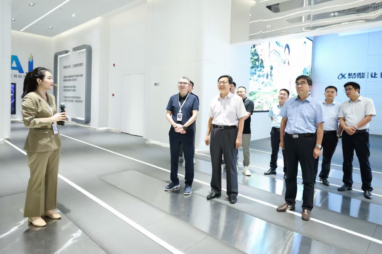 调研期间,张庆亮一行参观了科大讯飞人工智能展厅,观摩了星火大模型、星火智慧黑板、星火教师助手及星火实录演示。