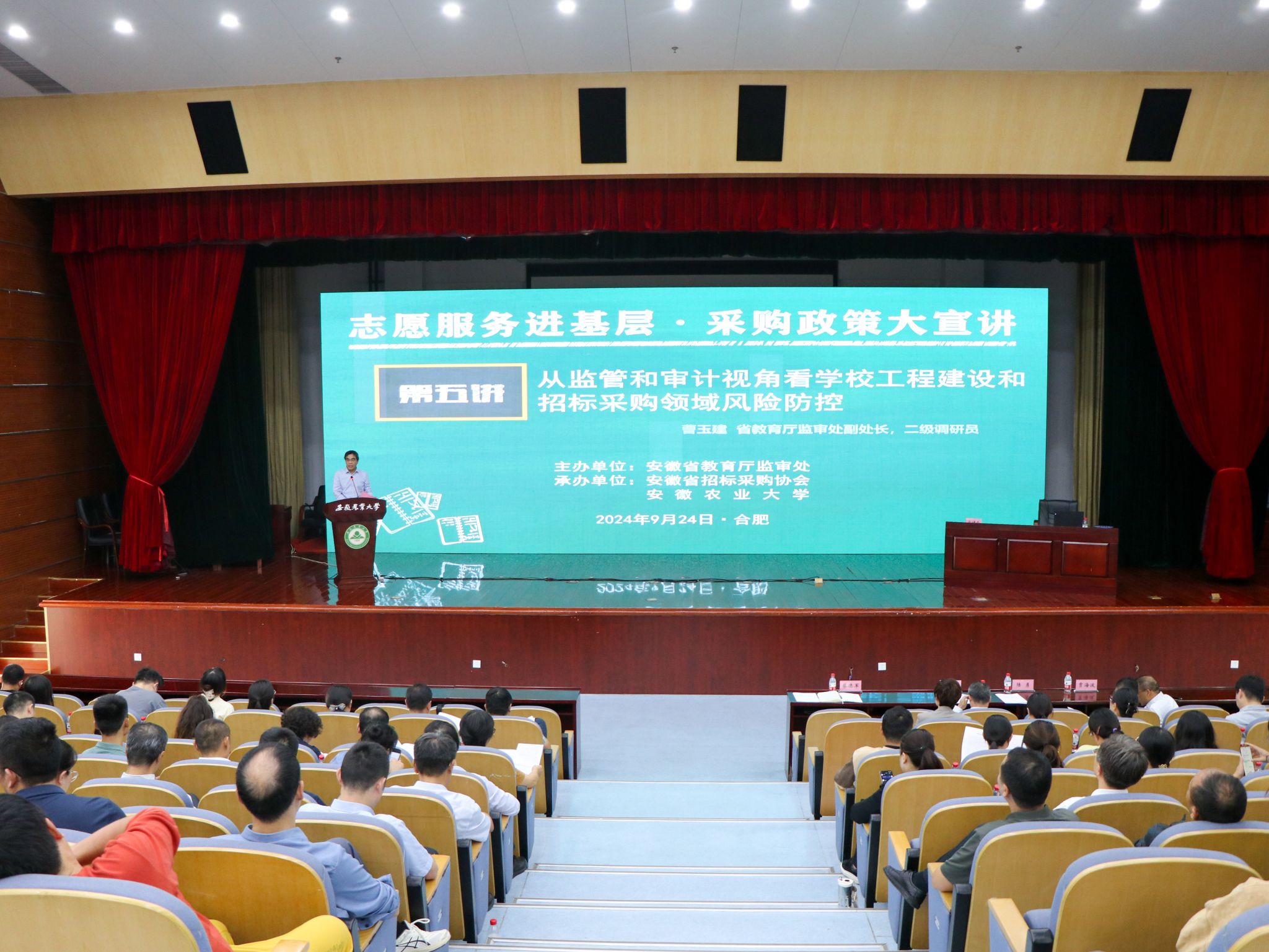 曹玉建以“从监管和审计视角看学校工程建设和招标采购领域风险防控”为题作报告。他从监管和审计的独特视角出发,深刻剖析了当前学校工程建设和招标采购过程中可能遇到的各种风险与挑战,并提出了针对性强、操作性高的风险防控策略和实务建议。与会人员一致认为,此次宣讲活动加深了对采购政策的理解和认识,提升了自身的专业素养和实际操作能力。
