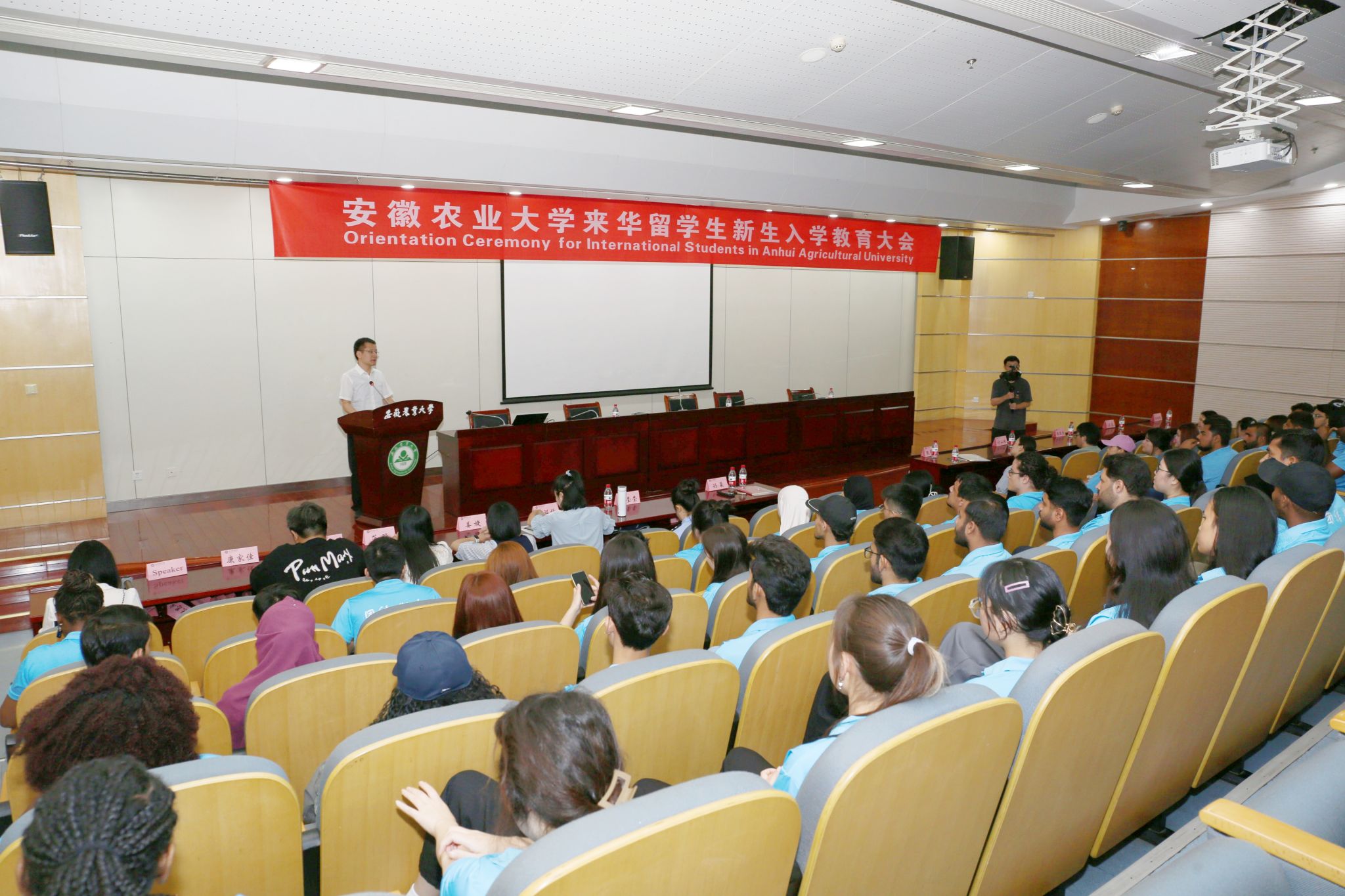 入学教育大会上,国际教育学院院长孙裴对各位新生表示热烈欢迎,并从珍惜学习机会、融入校园生活、传播中国文化、勇于探索创新四个方面寄语新生;合肥市出入境管理局、琥珀派出所相关人员介绍了《中华人民共和国外国人入境出境管理法》、《中华人民共和国境内外国人宗教活动管理规定》和《中华人民共和国禁毒法》等法律法规并进行了防范电信诈骗、道路交通法规等教育;教务处和研究生院分别从专业概况、培养目标、课程设置、毕业要求等方面讲解人才培养方案、培养流程及注意事项;导师代表解答了新生在科研方面存在的困惑并要求新生自觉遵守学术规范,坚守学术诚信,坚决杜绝学术不端行为。