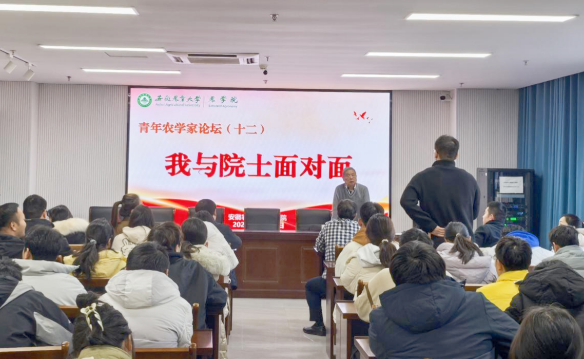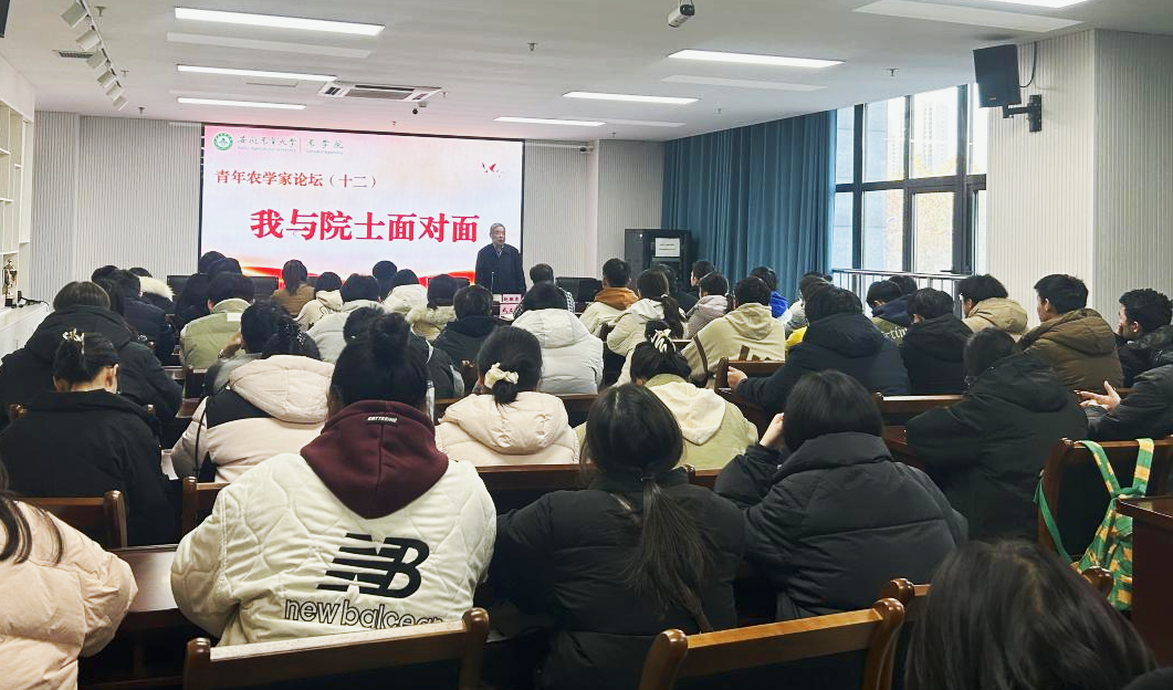 12月15日下午,我国著名小麦育种专家、中国工程院院士赵振东研究员做客“青年农学家论坛”,与我校学子面对面,讲授了一堂弘扬科学家精神的“大思政课”,畅谈科研经历,分享家国情怀。农学院领导班子成员参加活动。