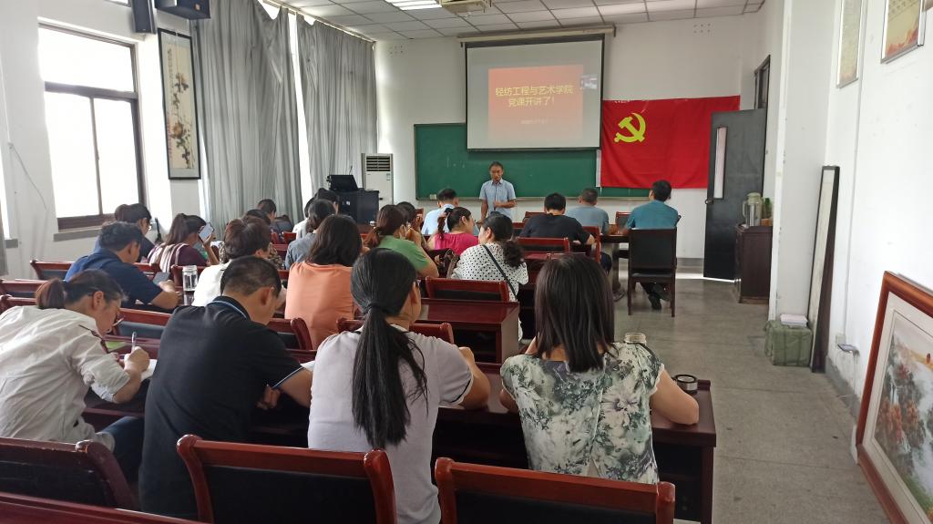 本网讯 7月3日下午,轻纺工程与艺术学院在院4A01室邀请学校派驻金寨县双河镇大畈村扶贫工作队队长、村党支部第一书记吴辰华为全院师生党员讲专题党课,党课采取线上线下结合的方式,学院党委书记王冬平主持。
