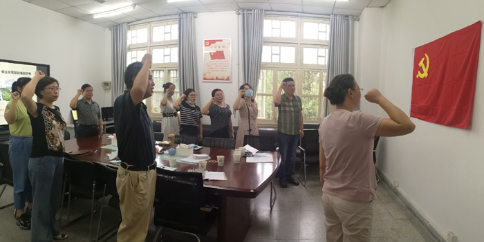 最后,全体党员在财务处党支部书记王薇的带领下,面对党旗,重温了入党誓词,进一步感悟初心使命、强化使命担当。(发展规划处、财务处)