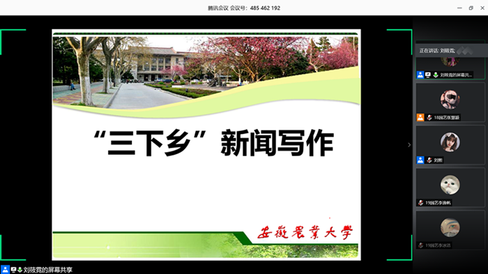 会上,团委老师介绍了本年度学生参与暑期“三下乡”基本情况,对所有备案项目在活动开展、组织实施、注意事项等方面提出了具体要求,希望大家提高安全意识,做好安全防范,在严格遵守当地疫情防控和抗洪抢险相关要求的前提下开展好实践活动。学生代表刘筱霓和刘熙分别就新媒体宣传技巧、调查报告撰写、新闻写作、实践组图拍摄、视频素材选取等内容进行了详细的讲解。