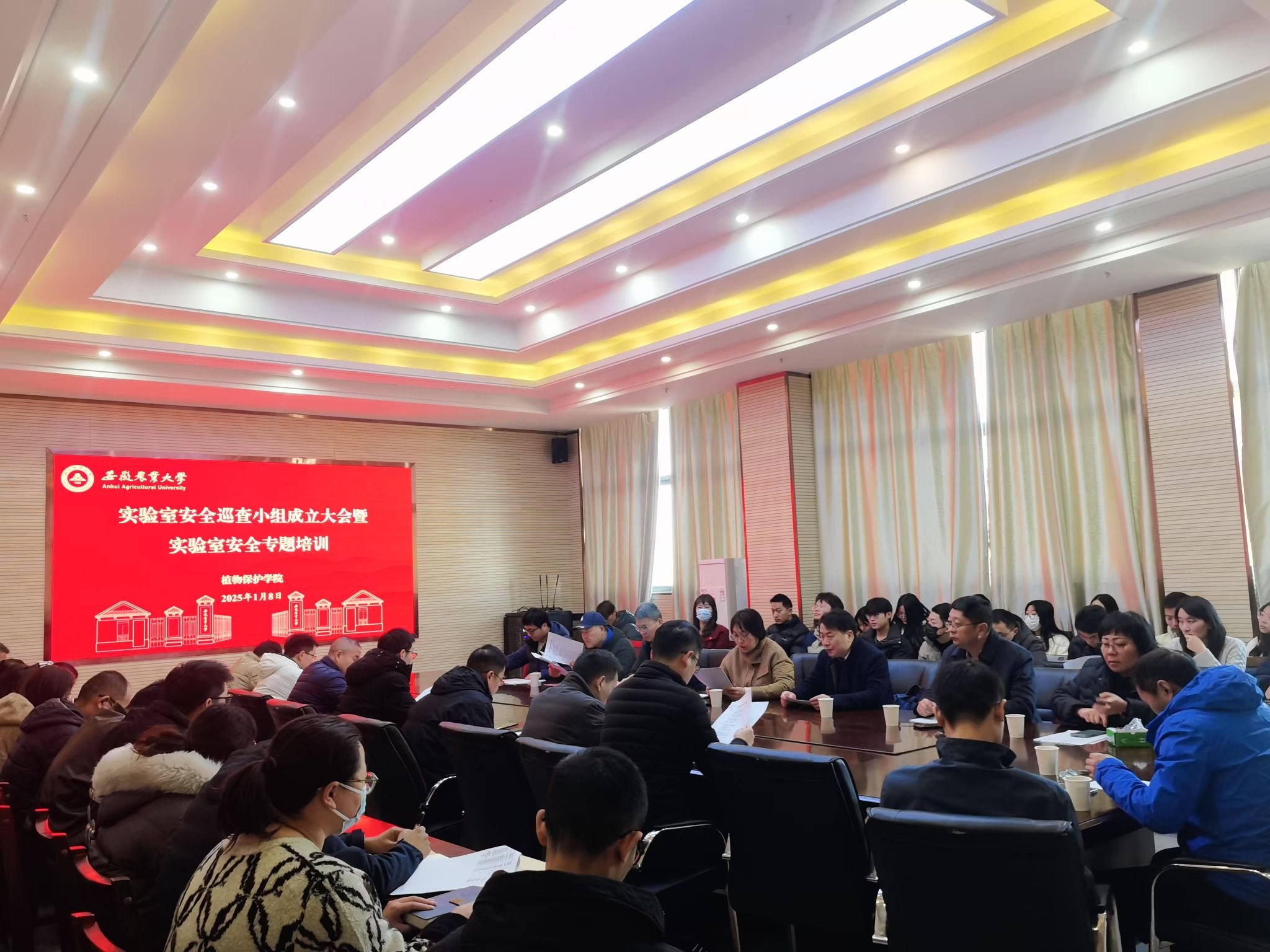 本网讯 为进一步筑牢安全底线,提升实验室安全管理水平,1月8日上午,植物保护学院在中西部综合楼1213会议室召开实验室安全巡查小组成立大会暨实验室安全专题培训。学院党政领导班子成员、各实验室安全责任人及实验室安全巡查小组全体成员参会。会议由学院实验室安全工作领导小组组长、党委书记刘柳主持。学校实验室安全管理中心工作人员应邀作专题培训。