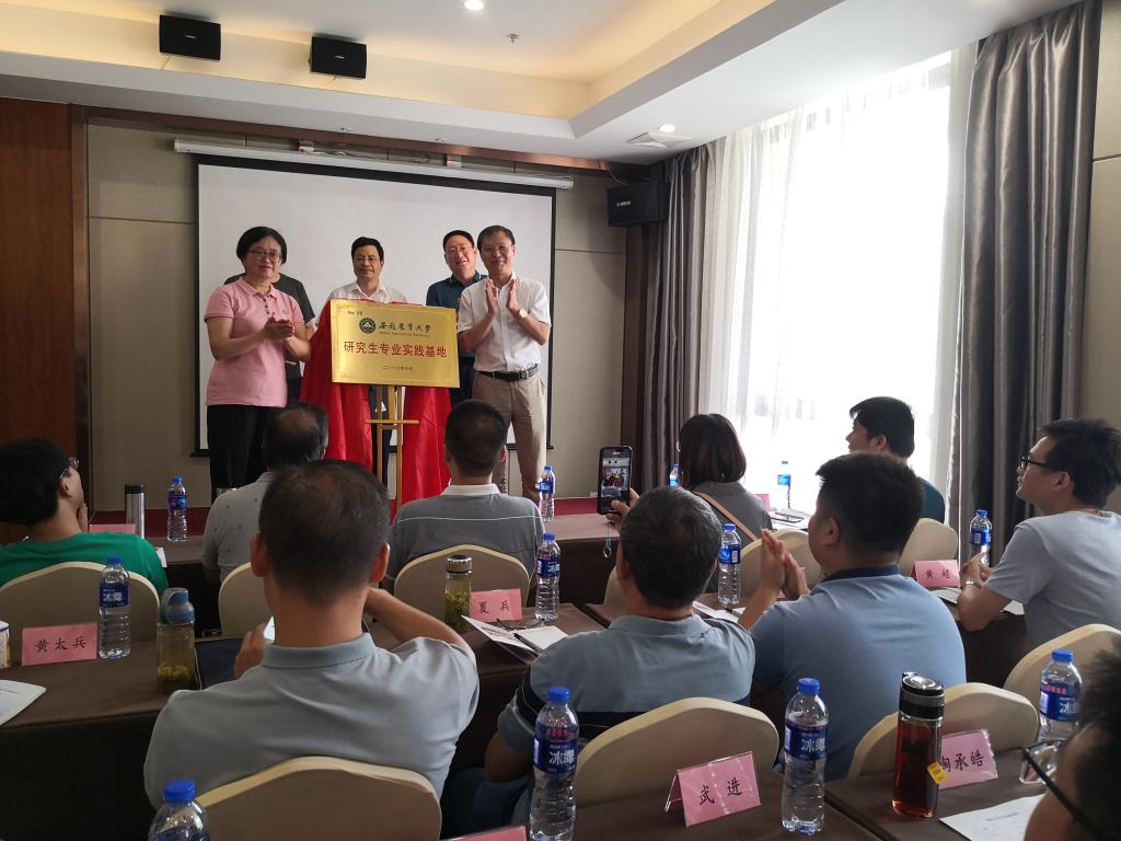 会上,学院还与马鞍山市市场监督管理局共建研究生专业实践基地,杜兆芳和何俊共同为安徽农业大学研究生专业实践基地揭牌。