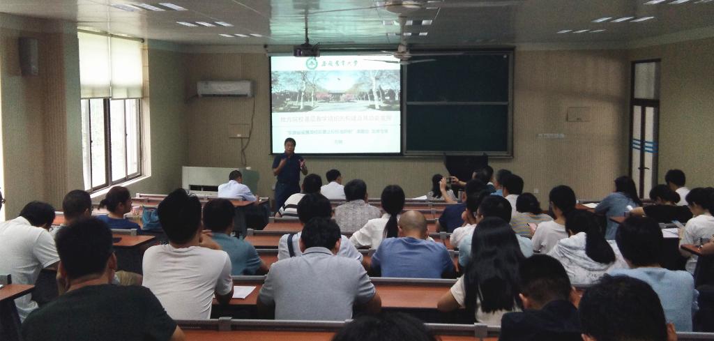 培训会邀请我校发规处处长方明教授做《地方高校基层教学组织的构建及其功能发挥》专题报告,对“双基”建设的背景、内涵、目标和意义等进行了全面的解读,同时对“双基”标准化建设的具体指标和示范创建的标准进行了细致的解读,为我院在推进“双基”的工作中指明了方向。