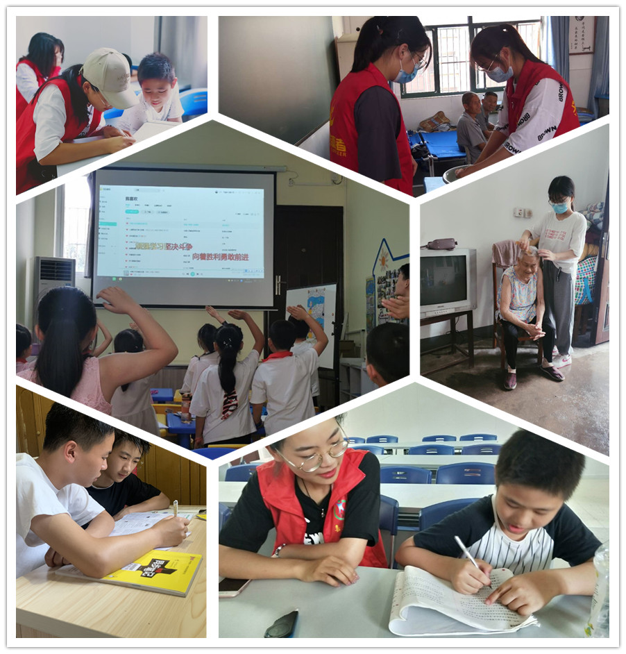 老年人是时代的守望,青少年是时代的希望。为了解孩子和老人的生活情况,信计学子走进敬老院、留守儿童之家等场所,开展爱心陪伴、学业辅导、爱老敬老等志愿服务活动,每到一处志愿者们与老人亲切地聊天、拉家常,为他们清扫卫生、整理房间,教小朋友们画画、书法、粉笔字等,以爱之名、传播美好,在实践中彰显了风采,在服务中收获了成长。