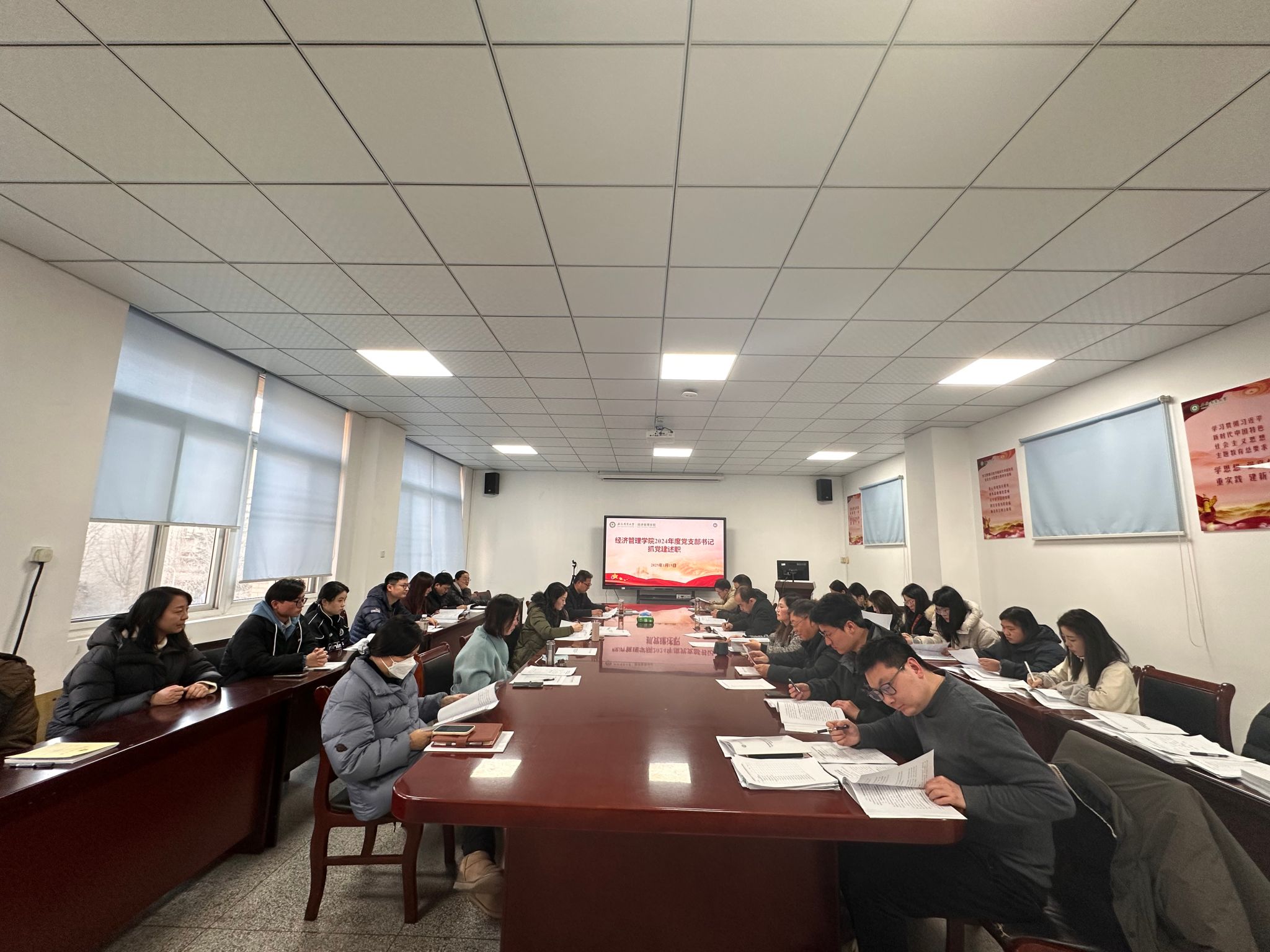 本网讯 1月15日下午,经济管理学院2024年度党支部书记抓党建述职会在经管楼304会议室召开。学院领导班子、党委委员、全体党支部书记、支部委员、师生代表参加了本次会议。会议由院党委书记武晓蓓主持。