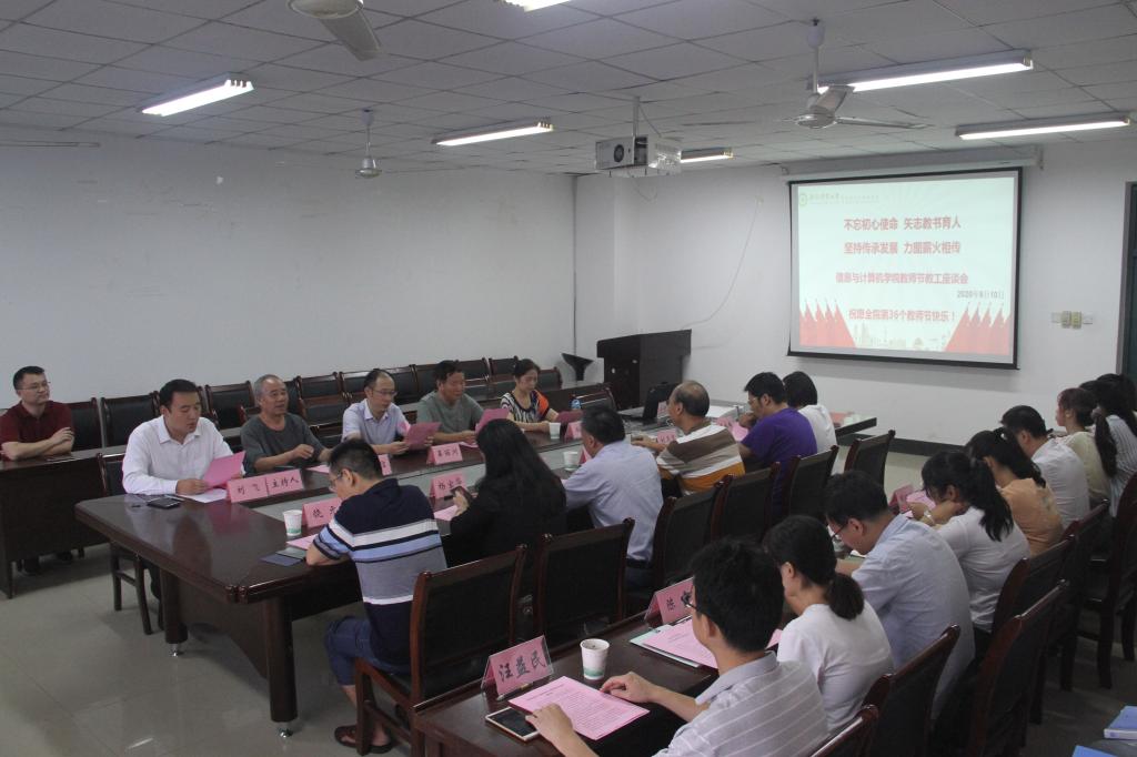 本网讯9月10日上午,学院在406会议室召开“不忘初心使命,矢志教书育人;坚持传承发展,共图薪火相传”为主题的教师节新老教工座谈会,热烈庆祝第36个教师节的到来。学院副院长辜丽川出席会议并讲话,各系部教师代表、19年以来新进教工代表、退休教师代表和学生代表20余人参加座谈。