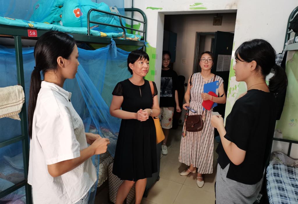 9月12日迎新当晚,学院党政领导带领各新生辅导员,深入新生宿舍,亲切慰问2020级新生,询问学生住宿、生活情况,第一时间掌握新生思想和入住情况,叮嘱新生们注意安全,警惕宿舍不良推销等诈骗行为,有问题及时与班级辅导员联系沟通。