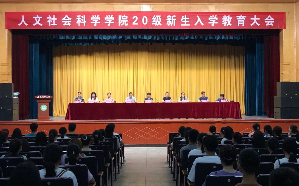 本网讯9月12日,人文社会科学学院在校大礼堂举行2020级新生开学典礼暨入学教育大会。学院党政领导、系部主要负责人、新生辅导员以及2020级全体新生参加大会。为方便更多师生、家长收听收看,典礼设置了直播平台同步播出。会议由学院党委副书记吕大鹏主持。