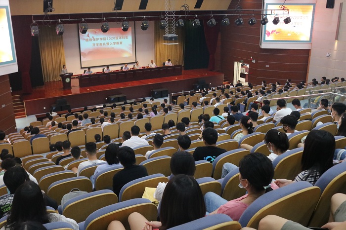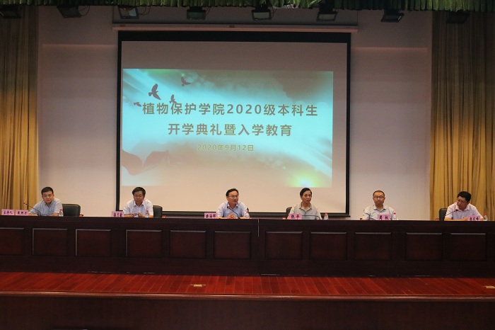 本网讯9月12日上午,植物保护学院2020级本科生开学典礼暨入学教育在图书馆第一报告厅举行。校党委常委、副校长、学院院长操海群,院党委书记张平、副院长潘月敏、周权和教师代表唐庆峰、院办老师、新生班主任等参加大会。院党委副书记、副院长、纪委书记戴照力主持开学典礼。