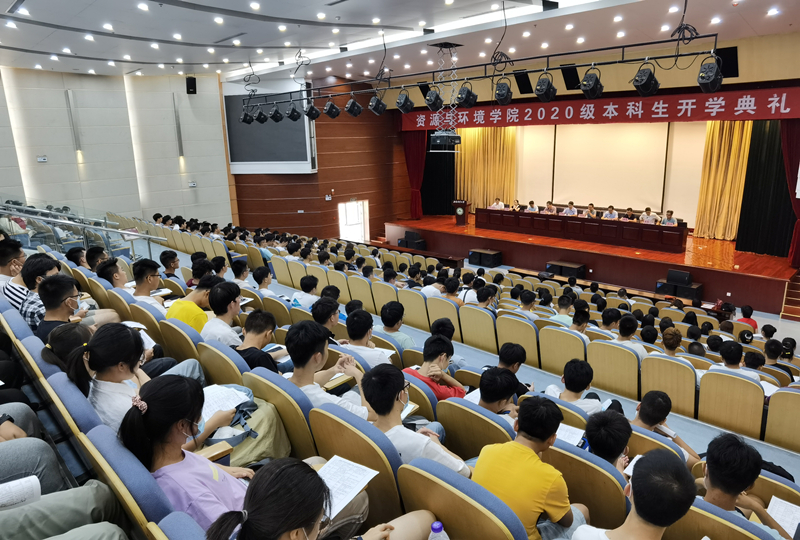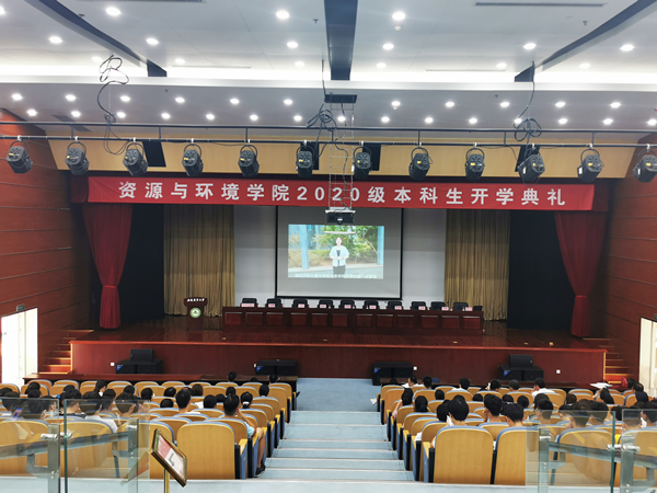本网讯 9月12日下午,资源与环境学院2020级本科生开学典礼在图书馆第一报告厅隆重举行。学院党政领导、新生辅导员以及全体2020级本科生参加典礼。典礼在嘹亮的国歌声中拉开帷幕。
