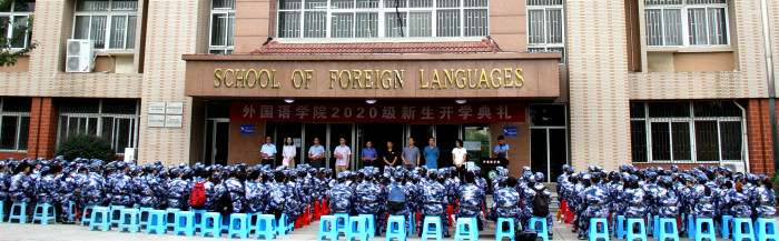 本网讯9月14日下午,外国语学院2020级新生开学典礼暨入学教育在外语楼举行,学院党政领导、系部主任、新生班主任和全体新生参加开学典礼,典礼由院党委副书记黄庆华主持。