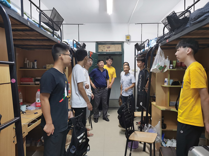 9月12日晚,院党委书记王冬平、院长毕守东和新生辅导员一行走访了新生宿舍。领导和老师们亲切地询问了新生同学饮食是否习惯、住宿环境是否适应,并叮嘱大家要学会独立,相互照应,尽快融入理学院大家庭。