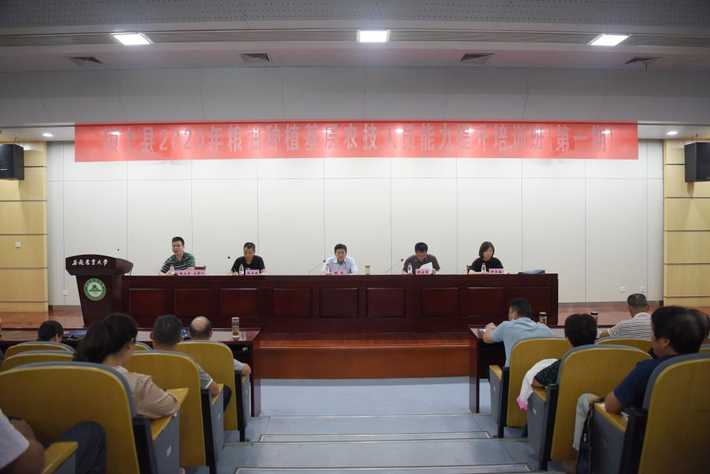 本网讯9月14日至18日,颍上县2020年粮油种植基层农技人员能力提升培训班在我校举办。继续教育学院院长胡启涛,颍上县农业农村局工会主席、县产业化领导小组办公室主任程良等出席开班式。开班式由继续教育学院非学历教育科负责人主持。