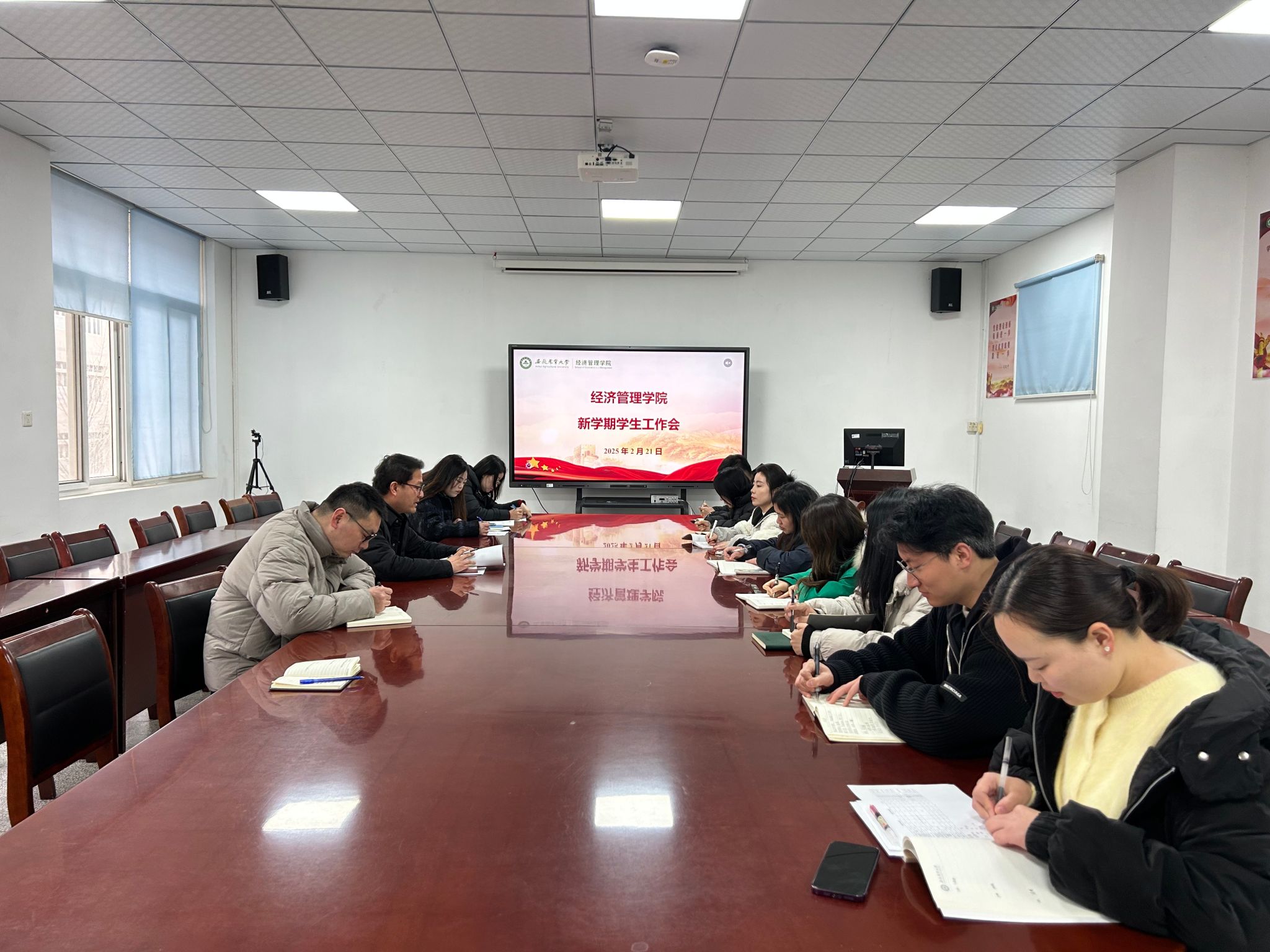 本网讯 2月21日上午,经济管理学院在经管楼304会议室召开新学期学生工作会议。学院党委副书记、纪委书记周涛主持会议,全体专职辅导员参会,共同谋划新学期学院学生工作高质量发展新篇章。