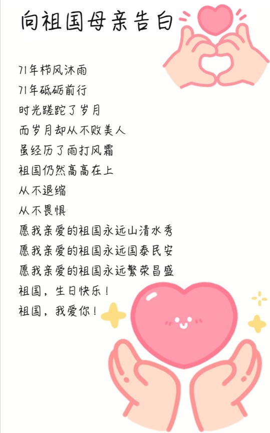 本网讯为庆祝新中国成立71周年,深化新时代青年大学生爱国主义教育,坚定不忘初心跟党走的信念,10月初,经济管理学院组织各团支部以“小我融入大我,青春献给祖国”为主题开展团日活动,各团支部通过主题班会、绘制网络文创作品、线上接力齐发声等形式青春告白祖国,为新中国成立七十一周年献礼。