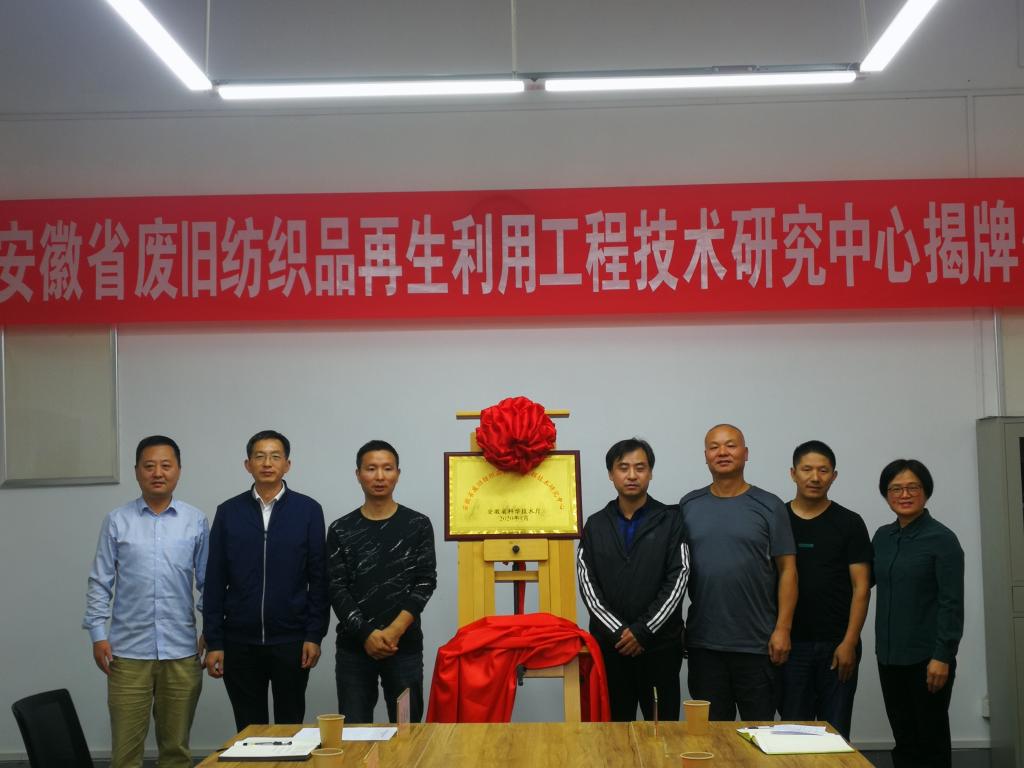 本网讯 10月10日下午,“安徽省废旧纺织品再生利用工程技术研究中心”揭牌仪式在安徽农业大学轻纺楼三楼会议室举行。广德市科技局局长姬庆雪、副局长张爱水,广德天运新技术股份有限公司董事长潘建新、副总经理张陆贤,安徽农业大学科技处处长武立权,轻纺工程与艺术学院党委书记夏成云、院长杜兆芳,相关单位工作人员及学院部分教师参加会议。会议由王健副院长主持。