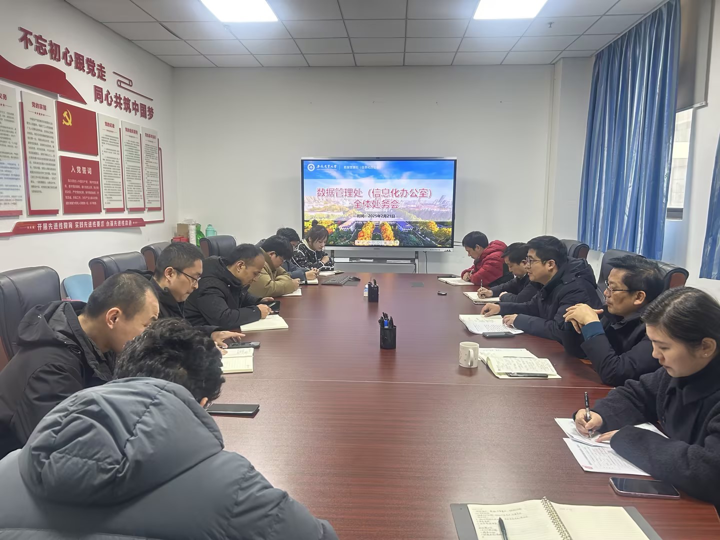本网讯 2月21日上午,数据管理处(信息化办公室)在校图书馆615会议室召开新学期工作例会,处室全体工作人员参加会议。数据管理处(信息化办公室)处长吴国卿主持会议。