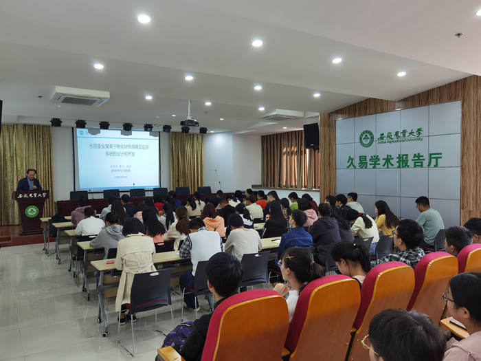 本网讯10月14日,海南大学林仕伟教授应资源与环境学院邀请来校开展学术访问和交流,并在中西部综合楼久易学术报告厅作题为“水质重金属离子电化学传感器及监测系统的设计和开发”的学术报告。资源与环境学院相关学科教师、研究生和本科生参加报告会,报告会由院长吴祥为主持。