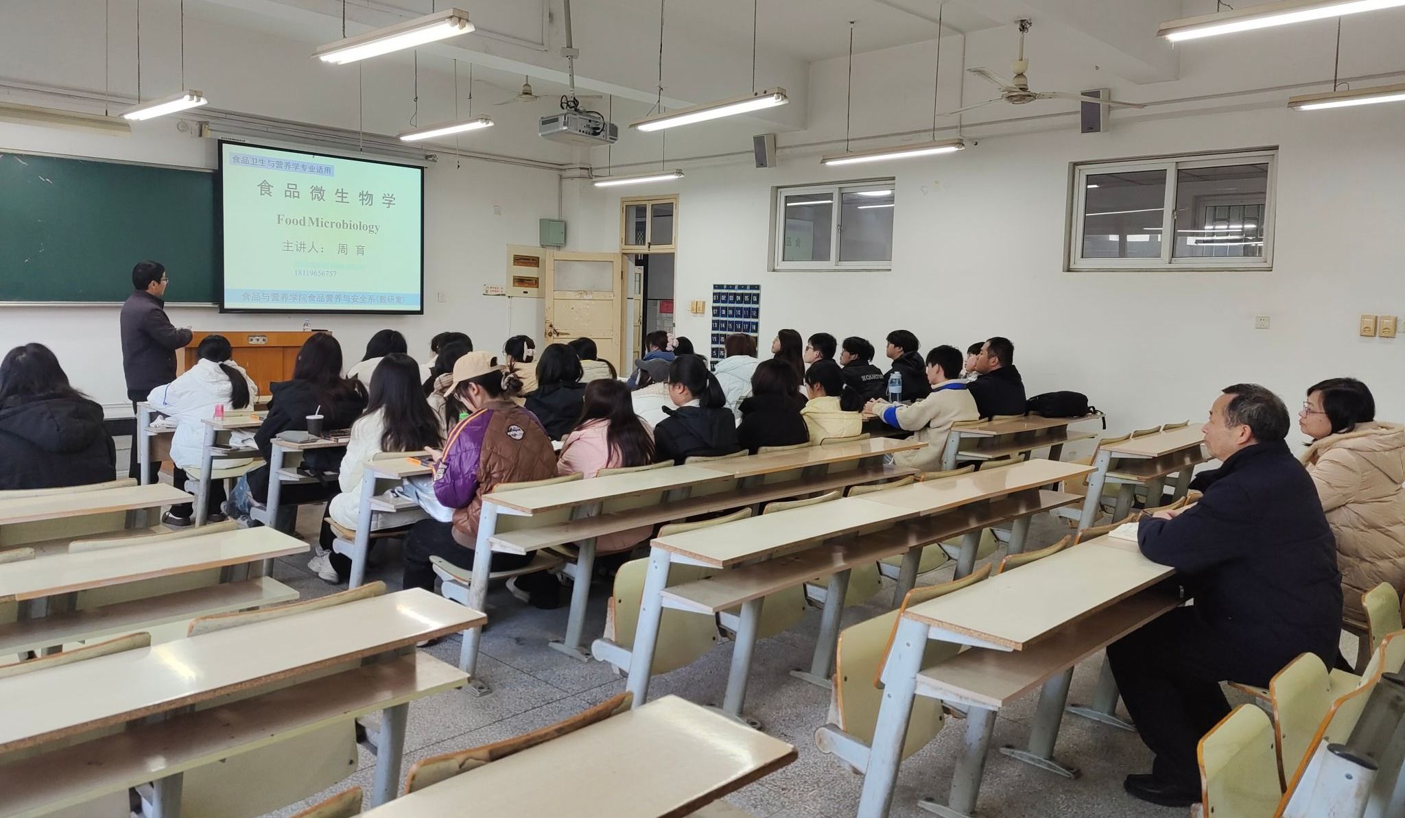 学院领导分别走进《畜产品加工工艺学》《食品微生物学》等课程教室,实地查看教师到岗、学生出勤以及教学设备运行等情况。授课教师备课充分,学生到课率高。为保障本学期教学平稳运行,学院提前部署,组织教学设备检查、课程安排优化及教师点对点提醒等工作,确保学院新学期教学工作平稳有序开启。