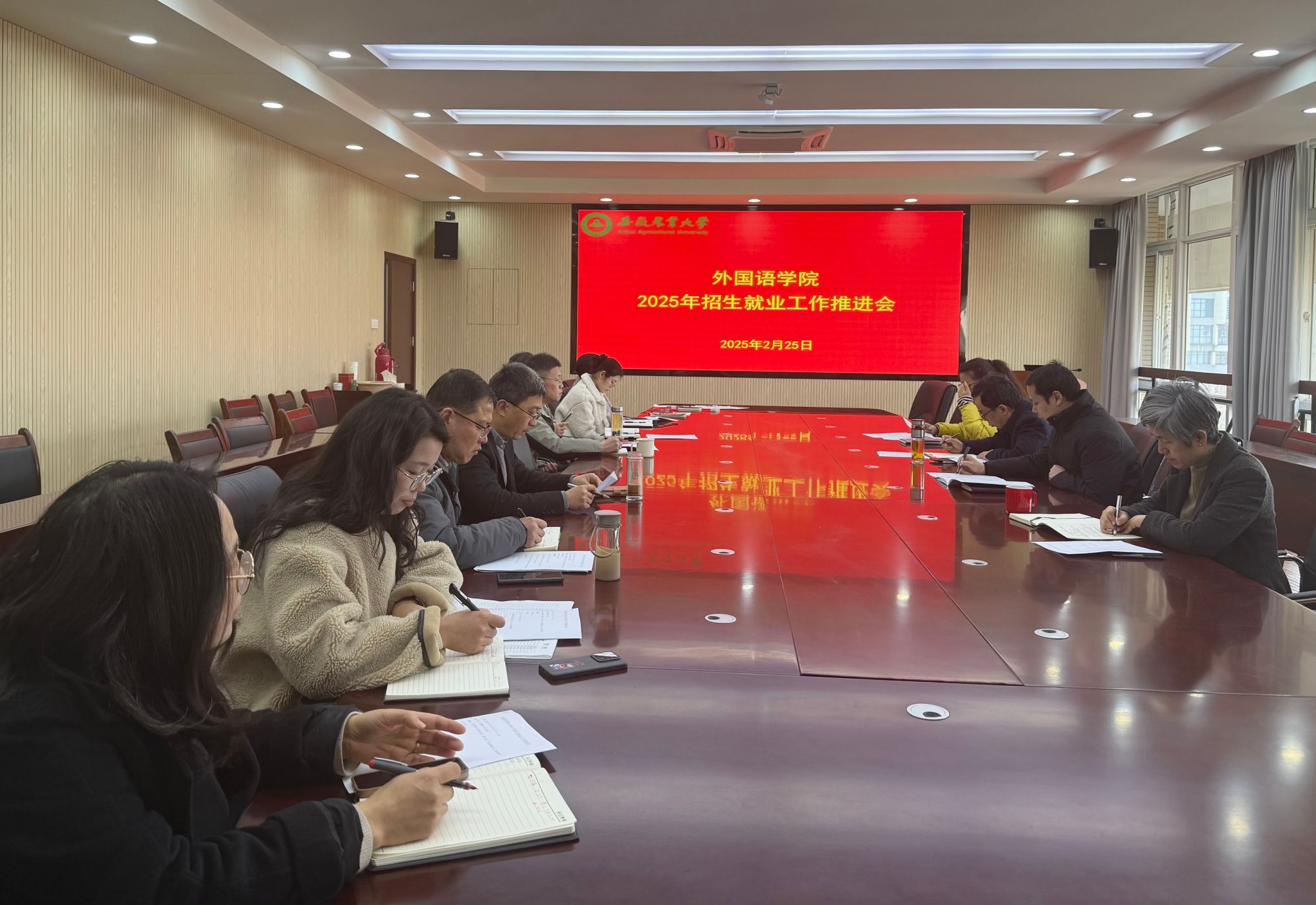 本网讯 为全力做好2025年招生就业工作,全方位提升就业服务质量,2月25日下午,外国语学院2025年招生就业工作推进会在外语楼506会议室召开,学院领导、各系(部)主任、毕业班辅导员、教学秘书、就业联络员等参加了会议,会议由副院长许宗瑞主持。