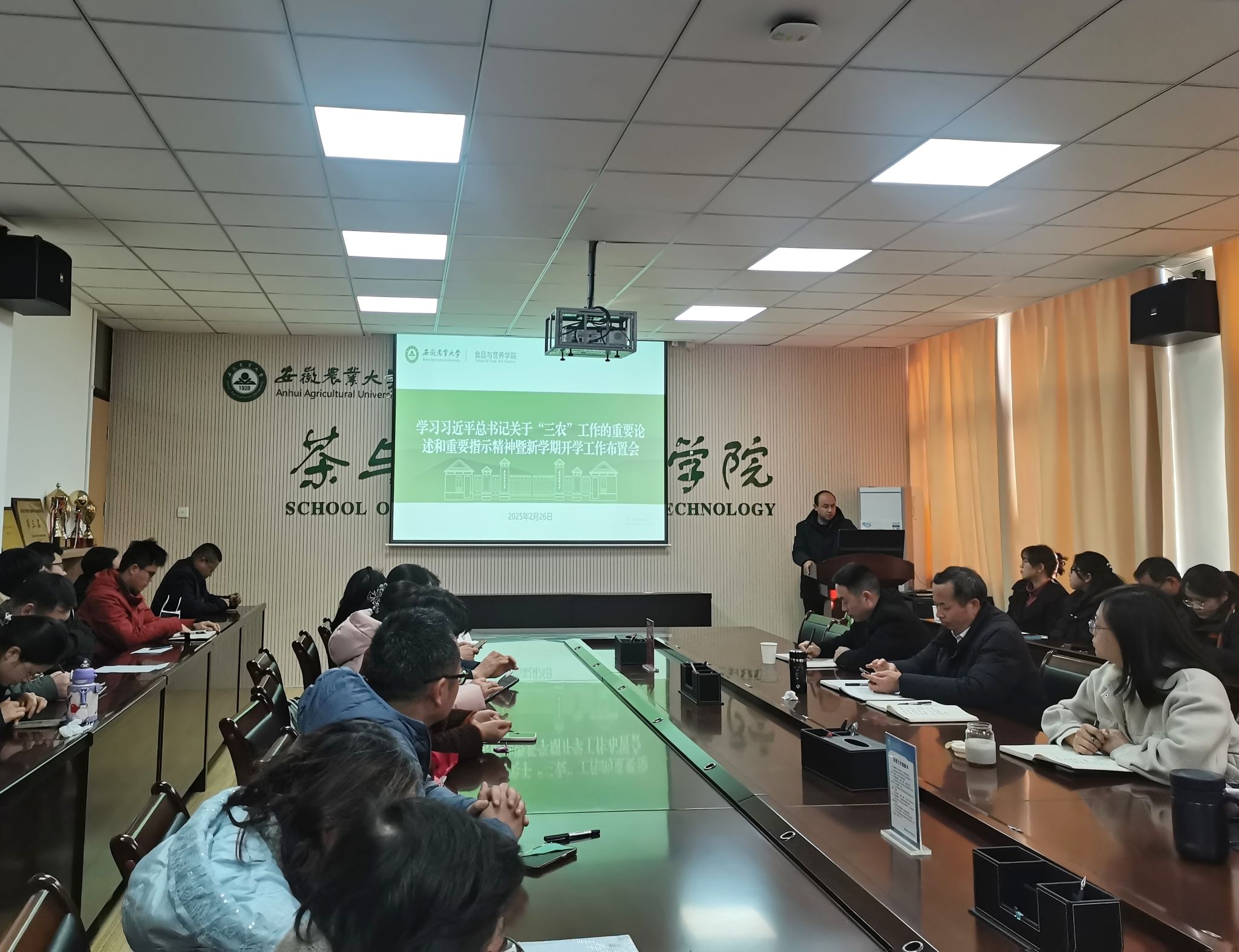 本网讯 2月26日下午,食品与营养学院在茶业楼219会议室召开春季学期第一次教职工大会,统一思想、凝聚共识,谋划重点工作。会议由院党委书记孙福主持,学院领导班子成员及全体教职工参加。